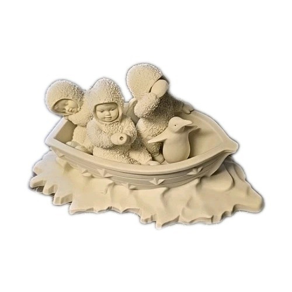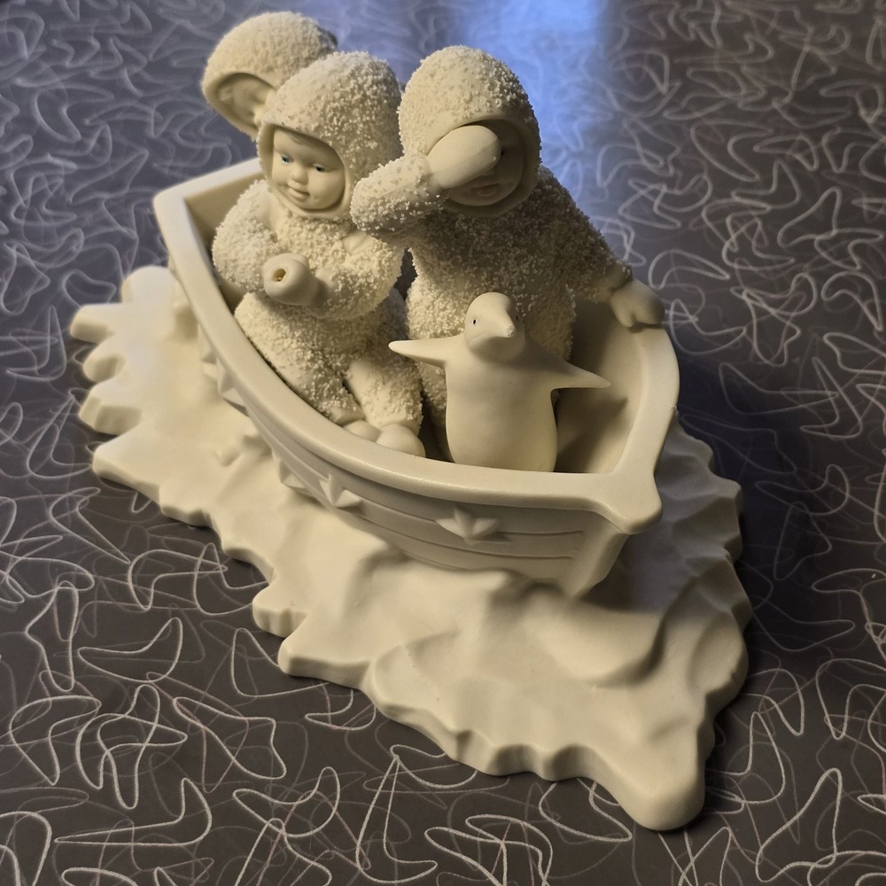 SEE PHOTOS MISSING POLE FOR STAR...STAR IS HERE..PREOWNED CONDITION This product is a rare and collectible Snowbabies figurine from Department 56. It features a penguin character in a boat with a textured finish. The porcelain material and white color are accented with winter-themed details, making it a perfect addition to any holiday collection. The item is 4.5 inches in height and 5.5 inches in width, and was manufactured in 1993. It is an original piece, retired and from the 1990-1999 time period.