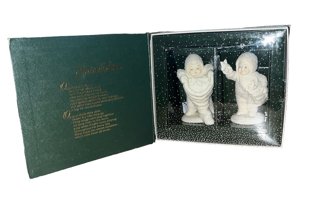 This adorable Snowbabies figurine is a perfect addition to any winter collection! The sweet "With Hugs And Kisses" design brings so much charm, and it looks even better in person. The details are delicate, and having the original box is a nice bonus. Great quality for the price—highly recommend for collectors or as a heartfelt gift!