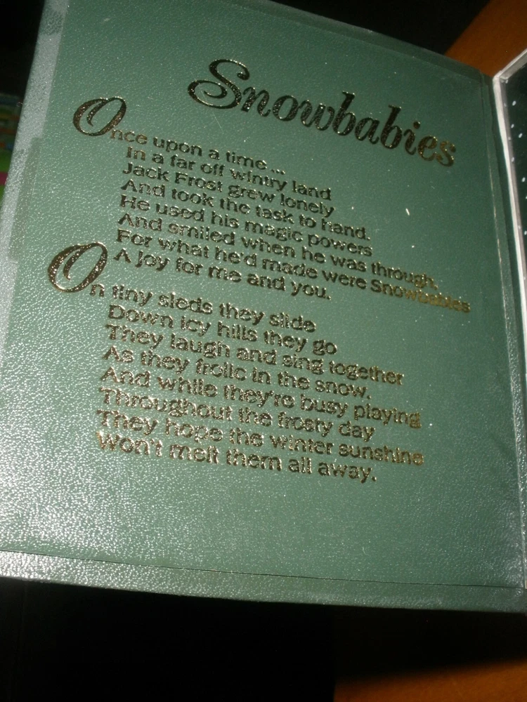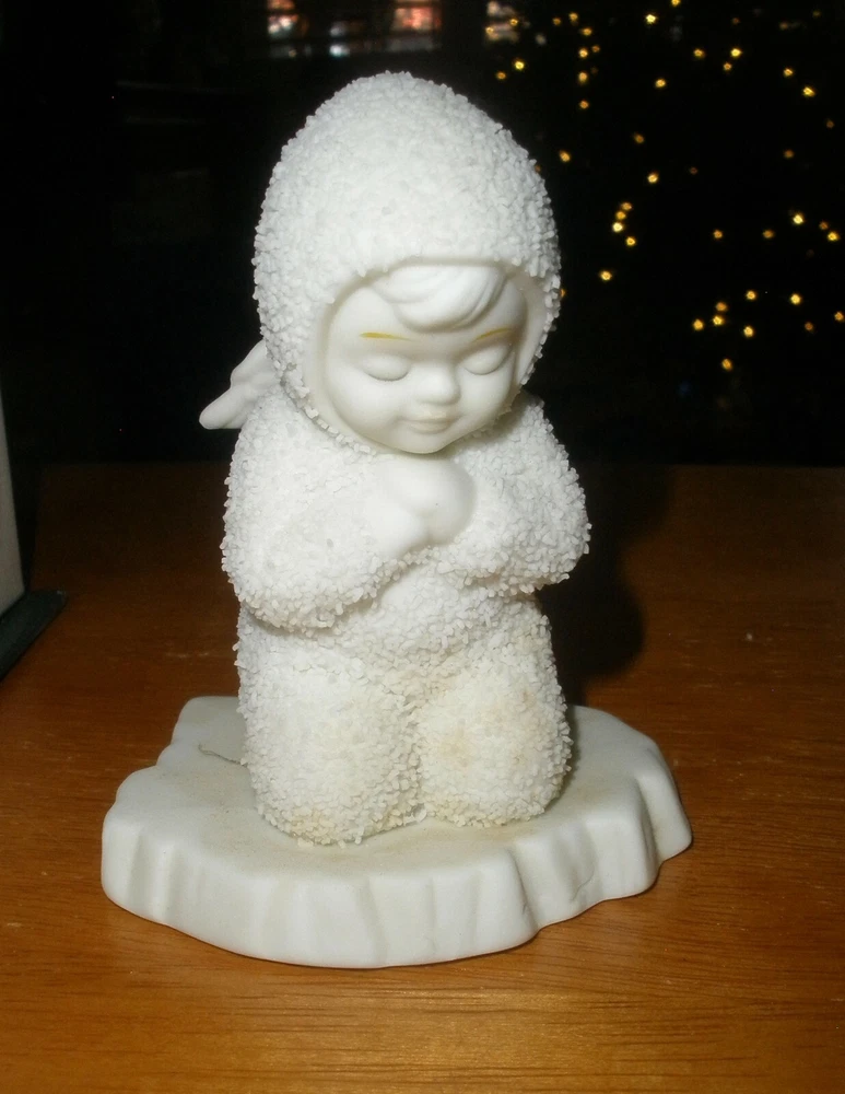 This is for Department 56 68390 Winter Tales of the Snowbabies "Now I Lay Me Down To Sleep" IT is preowned in the box. The box does show some damage on the side. - see pictures The figure is kneeling and praying. This is Part of the Winter Tales. The box is shaped like a book.