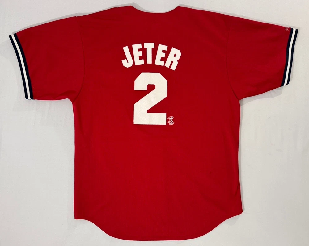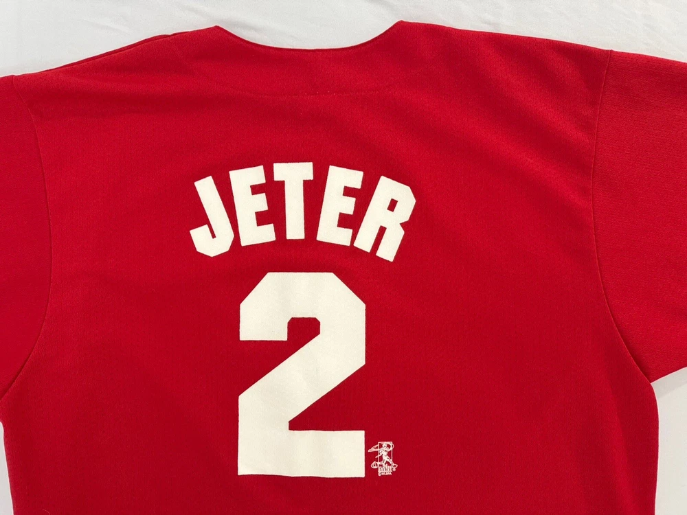 Derek Jeter #2 New York Yankees Vintage MLB Majestic 90s Red Jersey Size XLarge Excellent pre owned condition Measurements are in photos Please look at all pictures to confirm condition as most items are pre loved unless stated Message me any questions you may have. Thank you for viewing my item! Don't forget to check out other items in my store