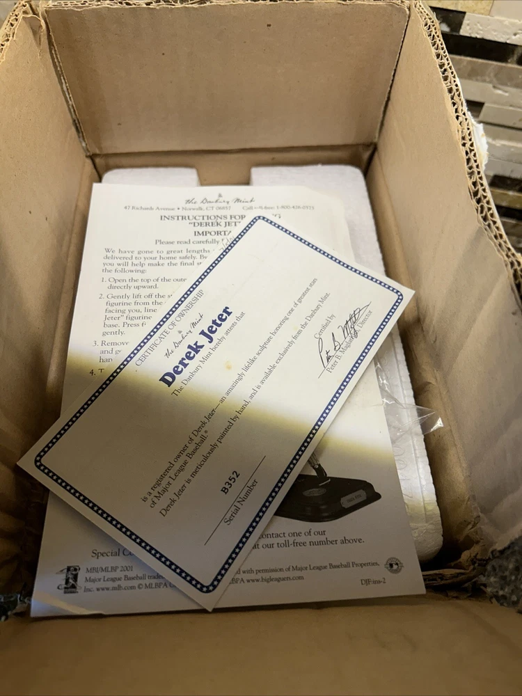 This is a rare and highly sought-after Derek Jeter Danbury Mint Statue Figurine. This piece is brand new, in box, and comes with a certificate of ownership. It features one of the most iconic players in Major League Baseball (MLB) and is a must-have for any serious collector or fan. Comes from smoke free environment and was cared for in curio cabinet. If you are unhappy with your purchase please contact me so we can resolve any issues you may have. Please leave feedback so we know the transaction is complete and that your satisfied with your purchase. Thank You!