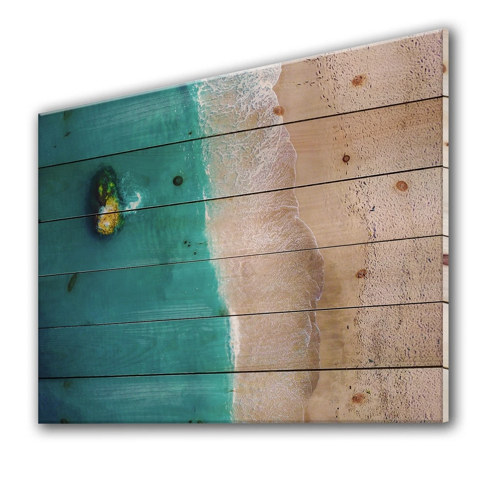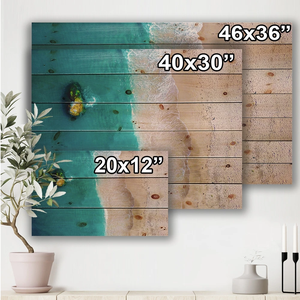Alas, a modern take on wood wall art. Once typically a wall art piece found only in rustic or farmhouse style decor settings, this Beach wood wall art will easily fit into even the most contemporary of designs.Using the highest quality 6 Color Canon UV Ink, this Traditional wood wall art incorporates several aspects of fine design into one stunning piece. With its slightly visible wood grain appearing through the colors and sleekly finished edges, it is a wonderful choice for any room in your home or office, being it a traditional or modern space. As each piece of wood has natural grain differences from the next, each of these wood wall arts is a truly unique addition to your space.Each Wood wall art is 100% handmade in Canada on Natural pine wood, using the highest quality ink which will Free Shipping Over $49.99* Details Designart 'Aerial View Of Idyllic Blue Ocean Beach' Traditional Print on Natural Product Description: Alas, a modern take on wood wall art. Once typically a wall art piece found only in rustic or farmhouse style decor settings, this Beach wood wall art will easily fit into even the most contemporary of designs. Using the highest quality 6 Color Canon UV Ink, this Traditional wood wall art incorporates several aspects of fine design into one stunning piece. With its slightly visible wood grain appearing through the colors and sleekly finished edges, it is a wonderful choice for any room in your home or office, being it a traditional or modern space. As each piece of wood has natural grain differences from the next, each of these wood wall arts is a truly unique addition to your space. Each Wood wall art is 100% handmade in Canada on Natural pine wood, using the highest quality ink which will not fade over time. Available in Differents sizes - OrientationHorizontal - SubjectBeach TypeWood Wall Art, Fine Art, Wood Fine Art, Print on Plaque - Arrives ready to hang on the wall with hanging kit included - MaterialMade with 100% natural pine wood - StyleTraditional - Number of Pieces1 - ColorBlue