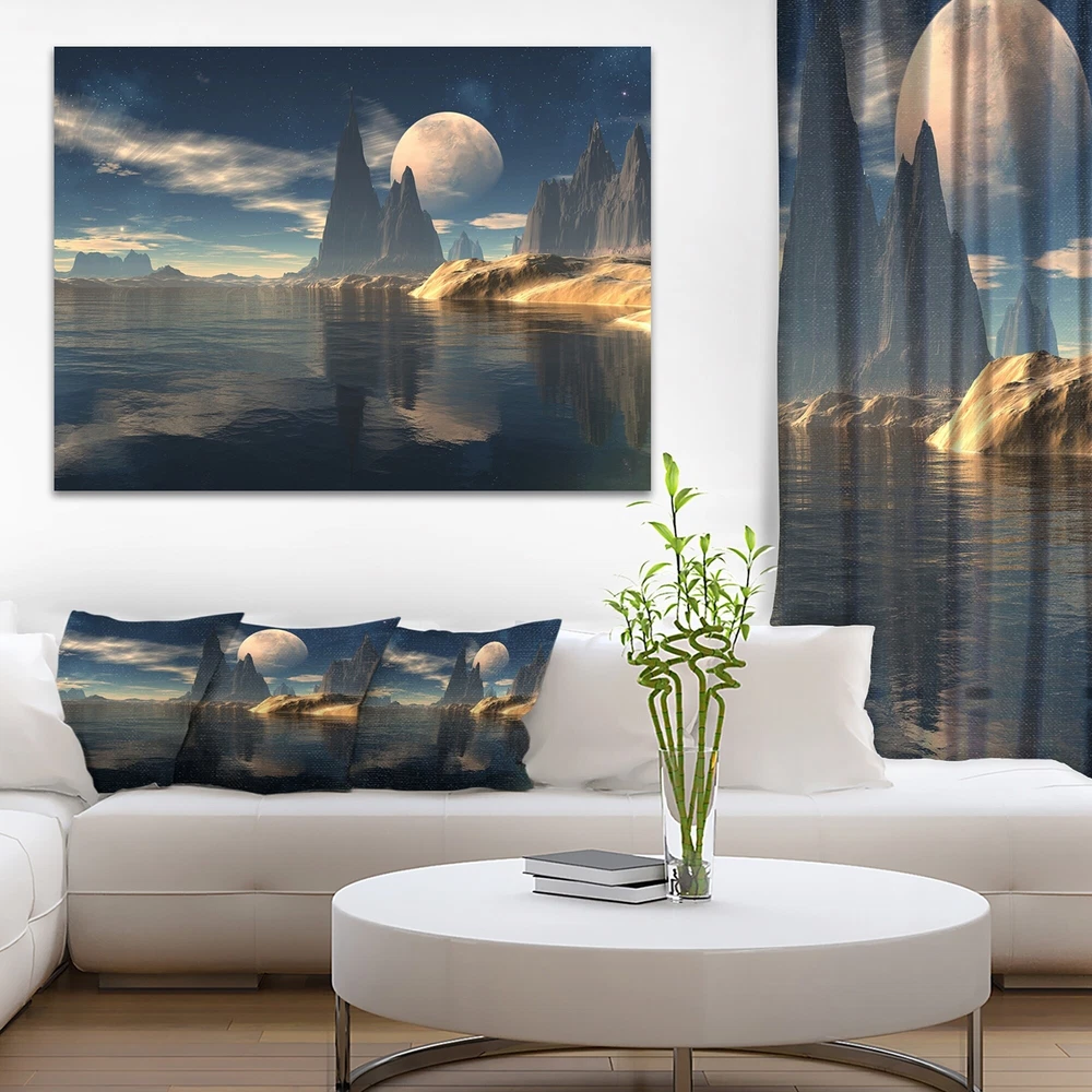 Available in several sizes, This beautiful Landscape Canvas Art is printed using the highest quality fade resistant ink on canvas. Every one of our fine art giclee canvas prints is printed on premium quality cotton canvas, using the finest quality inks which will not fade over time. Each giclee print is stretched tightly over a 1 inch wood sub frame ensuring the canvas is taught and does not buckle. This canvas art print is gallery-wrapped (the design continues on the sides) , giving it a real art gallery feel. All of our canvas prints are carefully packaged with bubble wrap, fragile labeling and sturdy boxes to ensure a safe delivery. Every canvas print arrives ready to hang on the wall, with the hanging kits included Orientation: HorizontalSubject: Landscapes, DecorativeType: Canvas Free Shipping Over $49.99* Details Designart "Antara Alien Planet" Photography Canvas Print Product Description: Available in several sizes, This beautiful Landscape Canvas Art is printed using the highest quality fade resistant ink on canvas. Every one of our fine art giclee canvas prints is printed on premium quality cotton canvas, using the finest quality inks which will not fade over time. Each giclee print is stretched tightly over a 1 inch wood sub frame ensuring the canvas is taught and does not buckle. This canvas art print is gallery-wrapped (the design continues on the sides) , giving it a real art gallery feel. All of our canvas prints are carefully packaged with bubble wrap, fragile labeling and sturdy boxes to ensure a safe delivery. Every canvas print arrives ready to hang on the wall, with the hanging kits included OrientationHorizontal SubjectLandscapes, Decorative TypeCanvas Art, Fine Art Giclee, Wrapped MaterialCanvas, Wood StyleLandscapes, Framed Art FramedFramed SizeExtra Large, Medium, Large, Oversized, Small Factory sealed boxes cannot be returned if opened.
