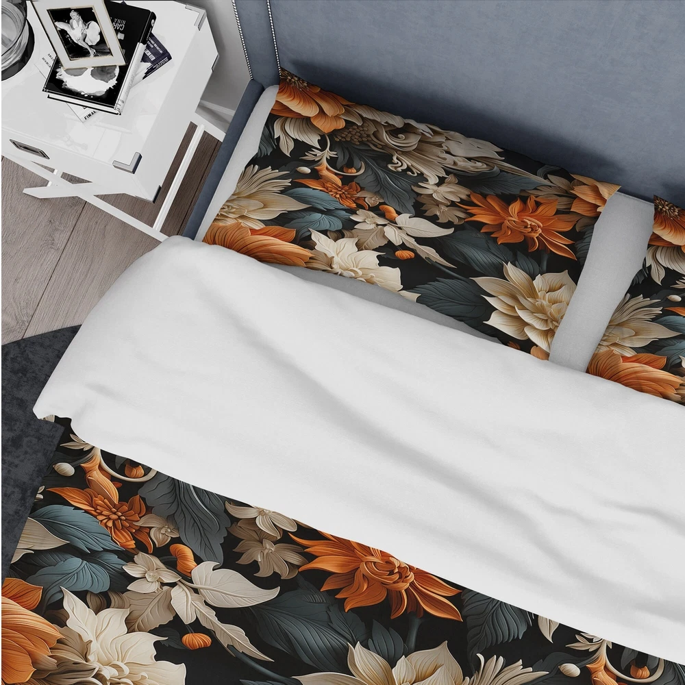 There is just nothing better than a beautiful, inviting comfortable bed after a long day. This Floral bed set is created using the richest colors stemming from high density Italian ink and the softest fabrics making it the perfect way to spruce up your bedroom, while keeping it ultra-comfortable. This luxurious Autumn Peonies Cottage Flowers I bed design is made with 100% microfiber polyester, making it ultra-soft to ensure you sleep comfortably all night long. This Cottage set includes 1 Bed Cover and 2 Shams and is available in twin, queen and king sizes.This Bedding Set is easily integrated into your already decorated space.What's Included? - Duvet Cover - Shams - Pillow Cases not included but can be buy separately - Comforter Insert NOT INCLUDEDFeatures - Printed Free Shipping Over $49.99* Details Designart "Autumn Peonies Cottage Flowers I" Cottage Bed Cover Set With 2 Shams Product Description: There is just nothing better than a beautiful, inviting comfortable bed after a long day. This Floral bed set is created using the richest colors stemming from high density Italian ink and the softest fabrics making it the perfect way to spruce up your bedroom, while keeping it ultra-comfortable. This luxurious Autumn Peonies Cottage Flowers I bed design is made with 100% microfiber polyester, making it ultra-soft to ensure you sleep comfortably all night long. This Cottage set includes 1 Bed Cover and 2 Shams and is available in twin, queen and king sizes. This Bedding Set is easily integrated into your already decorated space. What's Included? - Duvet Cover - Shams - Pillow Cases not included but can be buy separately - Comforter Insert NOT INCLUDED Features - Printed using High Density Italian Ink making the colors extra vibrant. - Made from ultra-soft, lightweight 100% microfiber polyester. Wrinkle resistant fabric. Down-like comfort, odorless. - The Cottage bed set includes one bed cover and two standard pillow shams to create a complete and stylish look. - The elegant and soft colors are both trendy and fun to brighten and update your bedroom. - Made in Canada - Decorative Wall Art and throw pillows to match this set are available but sold separately. - Actual comforter inserts and pillow inserts are not included. This set includes the two pillow shams and comforter cover only. King Dimensions: - 1 Duvet Cover104 inches wide x 88 inches long - 2 King Shams20 inches wide x 36 inches long Queen Dimensions: - 1 Duvet Cover88 inches wide x 88 inches long - 2 Standard Shams16 inches wide x 26 inches long Twin Dimensions: - 1 Duvet Cover68 inches wide x 88 inches long - 1 Standard Sham16 inches wide x 26 inches long Product Details - MaterialPolyester. - PatternFloral - ColorWhite - StyleCottage; traditional - ReversibleNo Directions: Fabric Care InstructionsMachine wash on cold gentle cycle. Wash separately on first wash. Use only non- chlorine bleach when needed. Tumble dry low. Remove promptly.