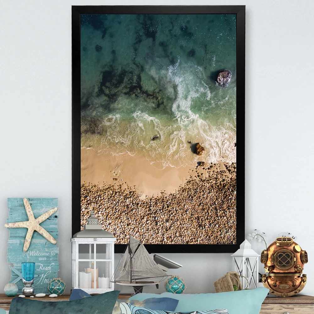 This beautiful Beach Rocks And Shore Aerial View VII Framed wall Art is printed using the highest quality fade resistant ink on canvas. Every one of our Framed Giclee Prints is printed on premium quality canvas, using the finest quality inks which will not fade over time and then mounted and framed on a 1.5 inch wide frame.This framed art print is available in many different color frames. All of our framed art prints are carefully packaged with corner protectors, fragile labeling, and sturdy boxes to ensure a safe delivery. Every framed art arrives ready to hang on the wall, with the hanging kit included.Features:- Style : Nautical & Coastal- Subject : Beach, Nautical & Beach, Beach & Ocean- Color : Blue- Premium quality cotton canvas mounted.- Available in several frame colors. - Arrives Free Shipping Over $49.99* Details Designart "Beach Rocks And Shore Aerial View VII" Nautical & Coastal Framed Product Description: This beautiful Beach Rocks And Shore Aerial View VII Framed wall Art is printed using the highest quality fade resistant ink on canvas. Every one of our Framed Giclee Prints is printed on premium quality canvas, using the finest quality inks which will not fade over time and then mounted and framed on a 1.5 inch wide frame. This framed art print is available in many different color frames. All of our framed art prints are carefully packaged with corner protectors, fragile labeling, and sturdy boxes to ensure a safe delivery. Every framed art arrives ready to hang on the wall, with the hanging kit included. Features: - Style Nautical & Coastal - Subject Beach, Nautical & Beach, Beach & Ocean - Color Blue - Premium quality cotton canvas mounted. - Available in several frame colors. - Arrives with instructions and hanging kit
