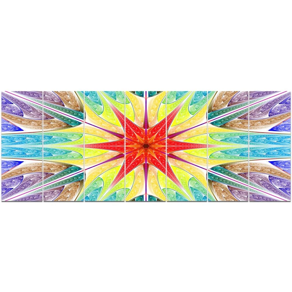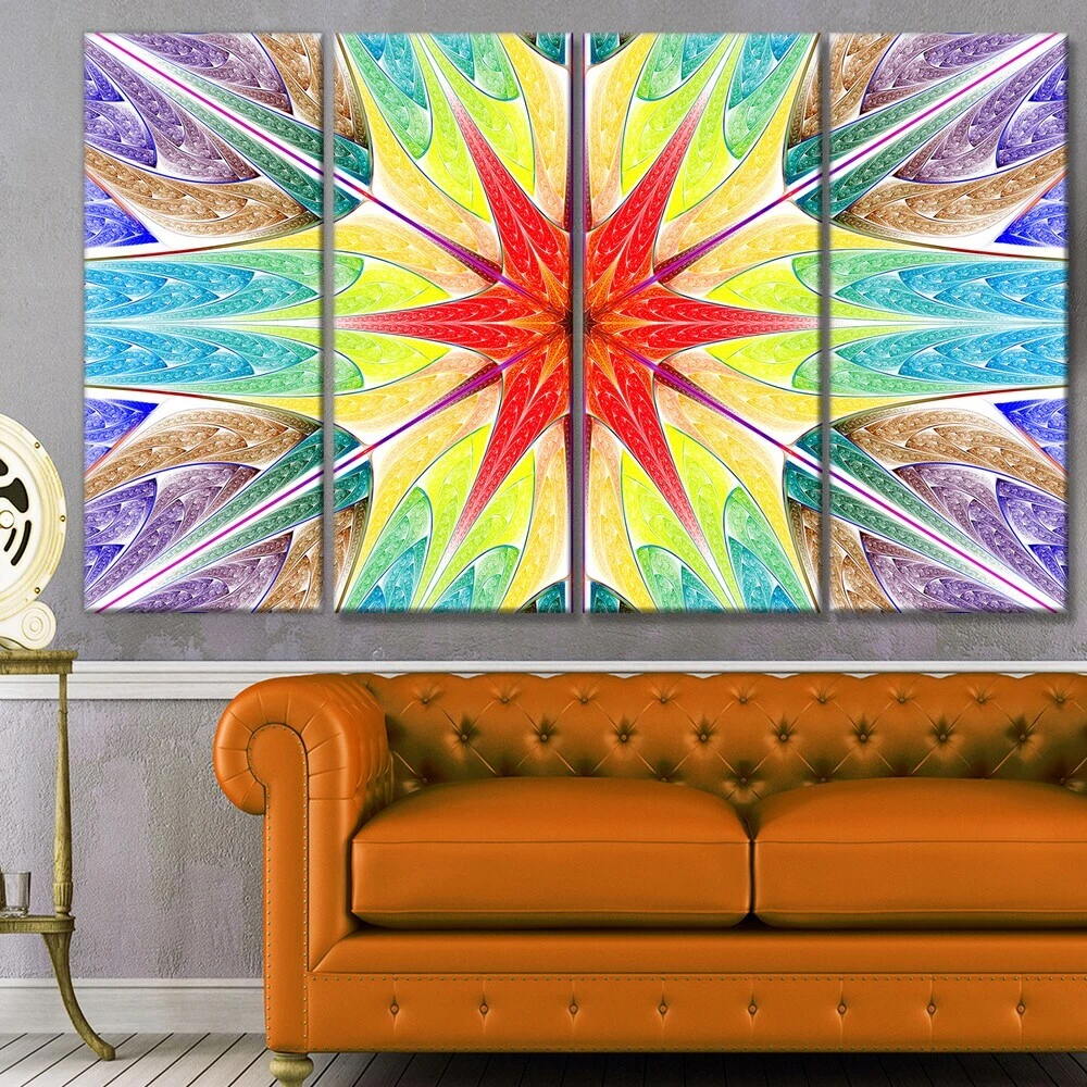 This beautiful Landscapes Canvas Art is printed using the highest quality fade resistant ink on canvas. Every one of our fine art giclee canvas prints is printed on premium quality cotton canvas, using the finest quality inks which will not fade over time. Each giclee print is stretched tightly over a 1 inch wood sub frame ensuring the canvas is taught and does not buckle. This canvas art print is gallery-wrapped (the design continues on the sides) , giving it a real art gallery feel. All of our canvas prints are carefully packaged in inflated cushion wrap, fragile labeling and sturdy boxes to ensure a safe delivery. Every canvas print arrives ready to hang on the wall, with the hanging kits includedShape: RectangleOrientation: HorizontalSubject: AbstractStyle: Contemporary, Fine Art Free Shipping Over $49.99* Details Designart " Beautiful Colorful Stained Glass" Abstract Wall Art Canvas Product Description: This beautiful Landscapes Canvas Art is printed using the highest quality fade resistant ink on canvas. Every one of our fine art giclee canvas prints is printed on premium quality cotton canvas, using the finest quality inks which will not fade over time. Each giclee print is stretched tightly over a 1 inch wood sub frame ensuring the canvas is taught and does not buckle. This canvas art print is gallery-wrapped (the design continues on the sides) , giving it a real art gallery feel. All of our canvas prints are carefully packaged in inflated cushion wrap, fragile labeling and sturdy boxes to ensure a safe delivery. Every canvas print arrives ready to hang on the wall, with the hanging kits included ShapeRectangle OrientationHorizontal SubjectAbstract StyleContemporary, Fine Art Giclee, Modern Dimensions32 inches high x 83 inches wide x 1 inch deep