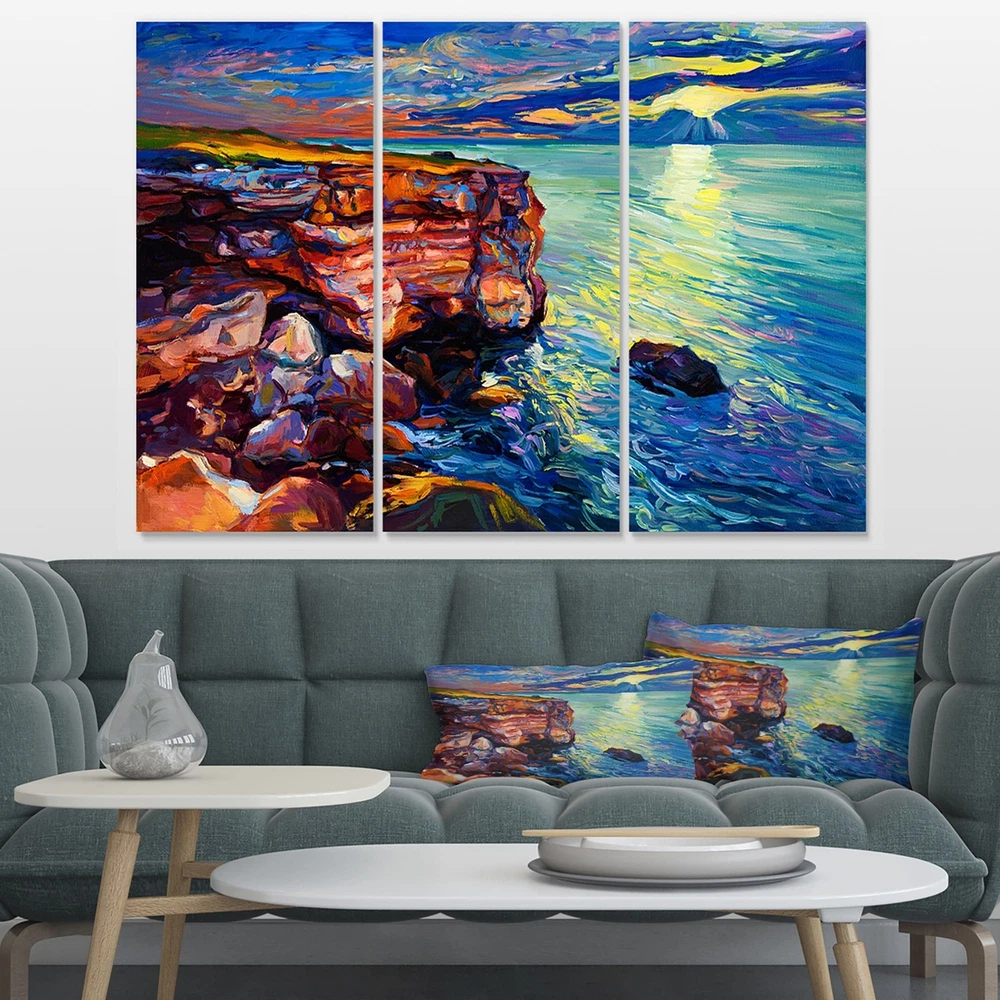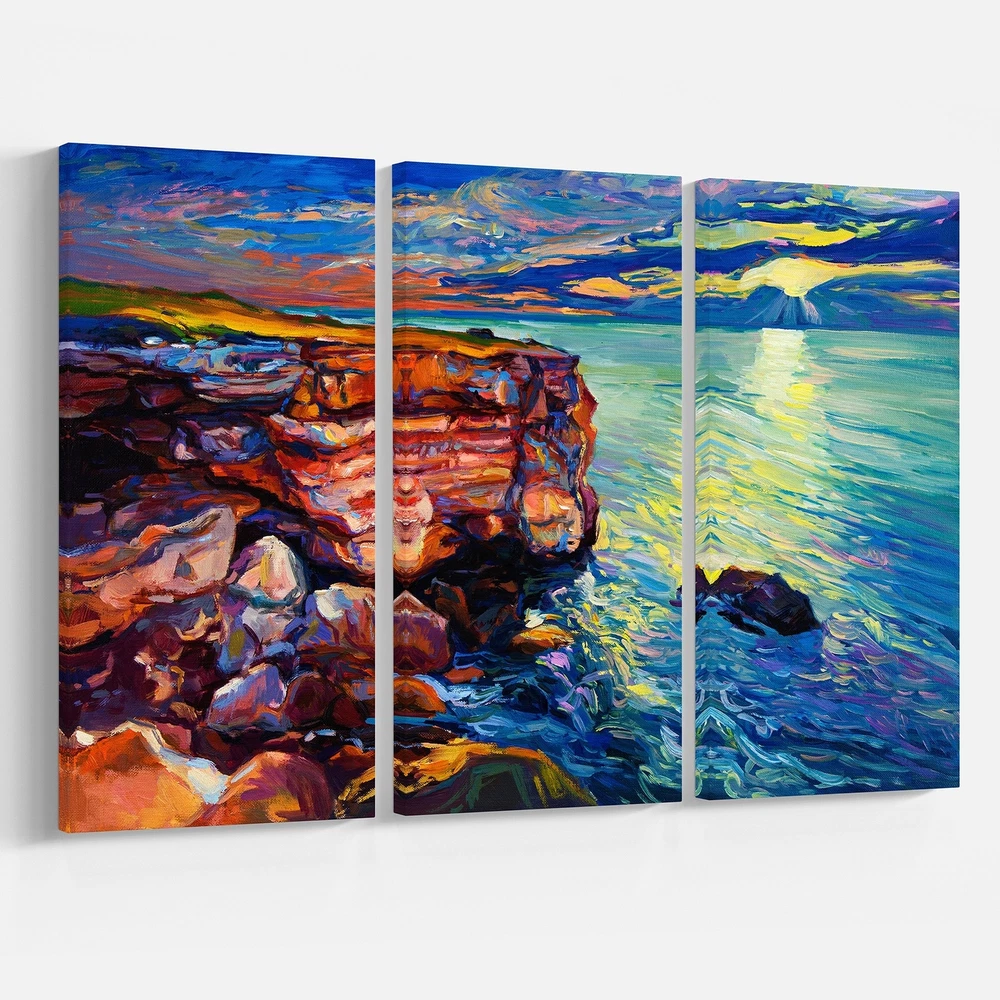 This beautiful Sea & Shore Canvas Art is printed using the highest quality fade resistant ink on canvas. Every one of our fine art giclee canvas prints is printed on premium quality cotton canvas, using the finest quality inks which will not fade over time. Each giclee print is stretched tightly over a 1 inch wood sub frame ensuring the canvas is taught and does not buckle. This canvas art print is gallery-wrapped (the design continues on the sides) , giving it a real art gallery feel. All of our canvas prints are carefully packaged with plastic protection, fragile labeling and sturdy boxes to ensure a safe delivery. Every canvas print arrives ready to hang on the wall, with the hanging kits included.- Style : Nautical & Coastal- Subject : Sea & Shore, Nautical- Color : Orange- This canvas Free Shipping Over $49.99* Details Designart "Beautiful Ocean and Cliffs" Seascape Canvas Art Print - 36x28 - 3 Product Description: This beautiful Sea & Shore Canvas Art is printed using the highest quality fade resistant ink on canvas. Every one of our fine art giclee canvas prints is printed on premium quality cotton canvas, using the finest quality inks which will not fade over time. Each giclee print is stretched tightly over a 1 inch wood sub frame ensuring the canvas is taught and does not buckle. This canvas art print is gallery-wrapped (the design continues on the sides) , giving it a real art gallery feel. All of our canvas prints are carefully packaged with plastic protection, fragile labeling and sturdy boxes to ensure a safe delivery. Every canvas print arrives ready to hang on the wall, with the hanging kits included. - Style Nautical & Coastal - Subject Sea & Shore, Nautical - Color Orange - This canvas giclee print is gallery-wrapped (the design continues on the sides) , giving it a real art gallery feel. - Premium quality cotton canvas. - Arrives ready to hang on the wall - Easy to Hang
