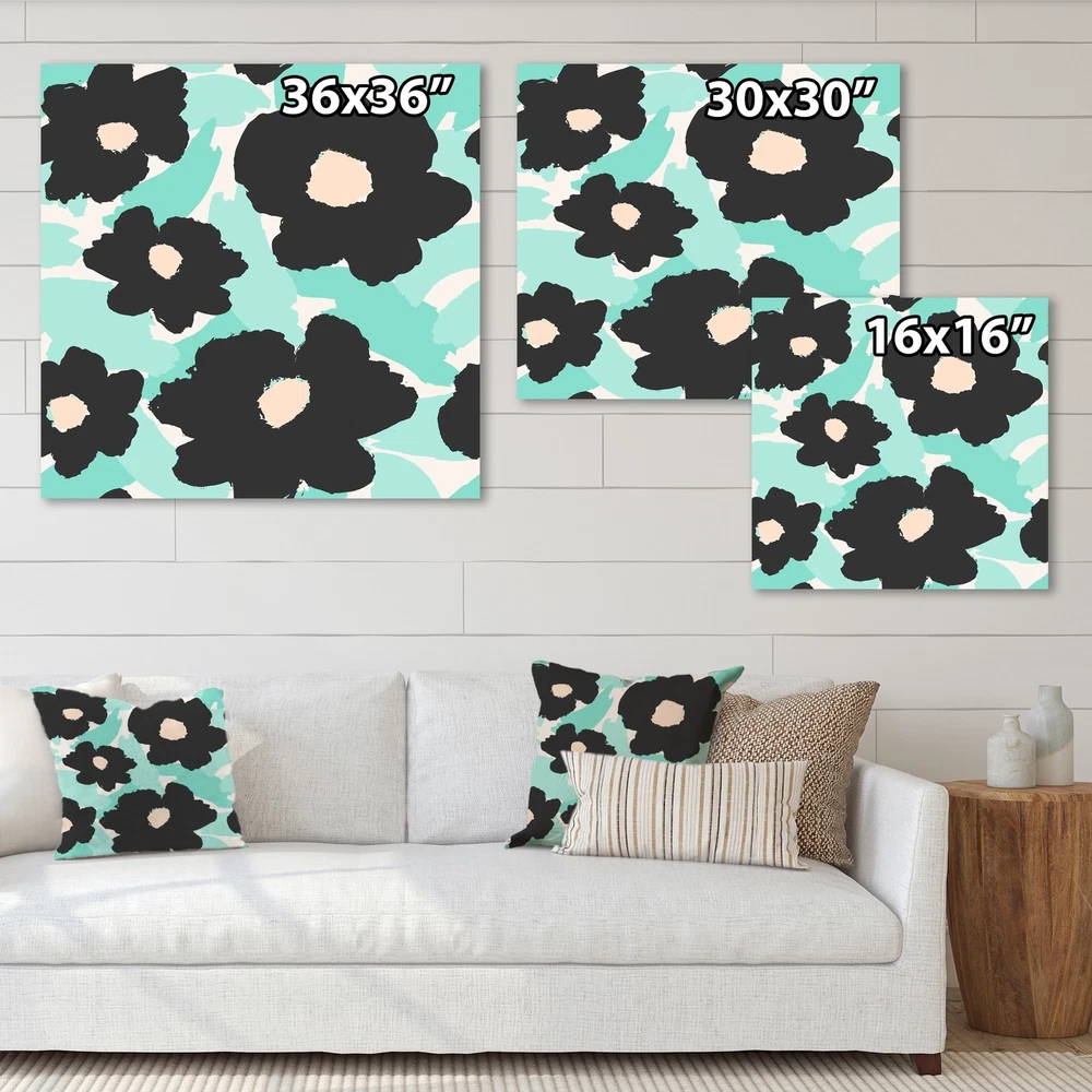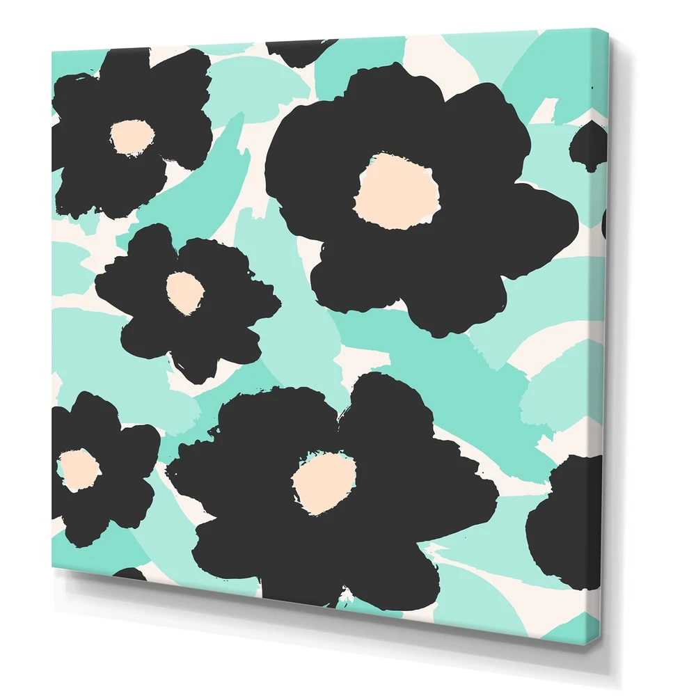 This beautiful Vintage Canvas Art is printed using the highest quality fade resistant ink on canvas. Every one of our fine art giclee canvas prints is printed on premium quality cotton canvas, using the finest quality inks which will not fade over time. Each giclee print is stretched tightly over a 1 inch wood sub frame for small size prints or a 1.5 inch wood sub frame for large size prints (40x30 60x28 ...) ensuring the canvas is taught and does not buckle. This canvas art print is gallery-wrapped (the design continues on the sides) , giving it a real art gallery feel. All of our canvas prints are carefully packaged with plastic protection, fragile labeling and sturdy boxes to ensure a safe delivery. Every canvas print arrives ready to hang on the wall, with the hanging kits included.- Free Shipping Over $49.99* Details Designart "Black Daisy Flowers On Turquoise III" Vintage Canvas Wall Art Print Product Description: This beautiful Vintage Canvas Art is printed using the highest quality fade resistant ink on canvas. Every one of our fine art giclee canvas prints is printed on premium quality cotton canvas, using the finest quality inks which will not fade over time. Each giclee print is stretched tightly over a 1 inch wood sub frame for small size prints or a 1.5 inch wood sub frame for large size prints (40x30 60x28 ...) ensuring the canvas is taught and does not buckle. This canvas art print is gallery-wrapped (the design continues on the sides) , giving it a real art gallery feel. All of our canvas prints are carefully packaged with plastic protection, fragile labeling and sturdy boxes to ensure a safe delivery. Every canvas print arrives ready to hang on the wall, with the hanging kits included.- Style Vintage, Traditional- Subject Floral, - Color Turquoise, Black- This canvas giclee print is gallery-wrapped (the design continues on the sides) , giving it a real art gallery feel.- Premium quality cotton canvas.- Arrives ready to hang on the wall- Easy to Hang