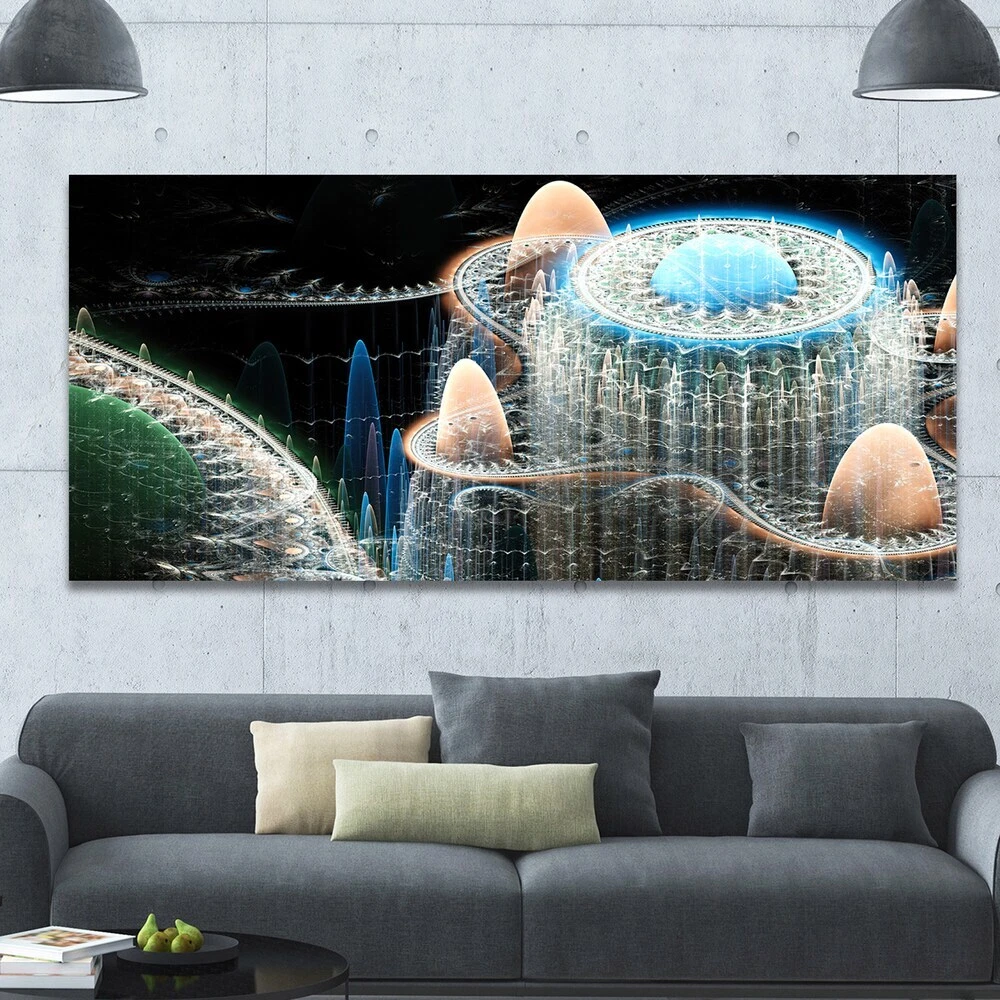 This beautiful Landscapes Canvas Art is printed using the highest quality fade resistant ink on canvas. Every one of our fine art giclee canvas prints is printed on premium quality cotton canvas, using the finest quality inks which will not fade over time. Each giclee print is stretched tightly over a 1 inch wood sub frame ensuring the canvas is taught and does not buckle. This canvas art print is gallery-wrapped (the design continues on the sides) , giving it a real art gallery feel. All of our canvas prints are carefully packaged in inflated cushion wrap, fragile labeling and sturdy boxes to ensure a safe delivery. Every canvas print arrives ready to hang on the wall, with the hanging kits includedShape: RectangleOrientation: HorizontalSubject: AbstractStyle: Contemporary, Fine Art Free Shipping Over $49.99* Details Designart "Blue Fractal Infinite World" Abstract Art on Canvas Product Description: This beautiful Landscapes Canvas Art is printed using the highest quality fade resistant ink on canvas. Every one of our fine art giclee canvas prints is printed on premium quality cotton canvas, using the finest quality inks which will not fade over time. Each giclee print is stretched tightly over a 1 inch wood sub frame ensuring the canvas is taught and does not buckle. This canvas art print is gallery-wrapped (the design continues on the sides) , giving it a real art gallery feel. All of our canvas prints are carefully packaged in inflated cushion wrap, fragile labeling and sturdy boxes to ensure a safe delivery. Every canvas print arrives ready to hang on the wall, with the hanging kits included ShapeRectangle OrientationHorizontal SubjectAbstract StyleContemporary, Fine Art Giclee, Modern SizeLarge