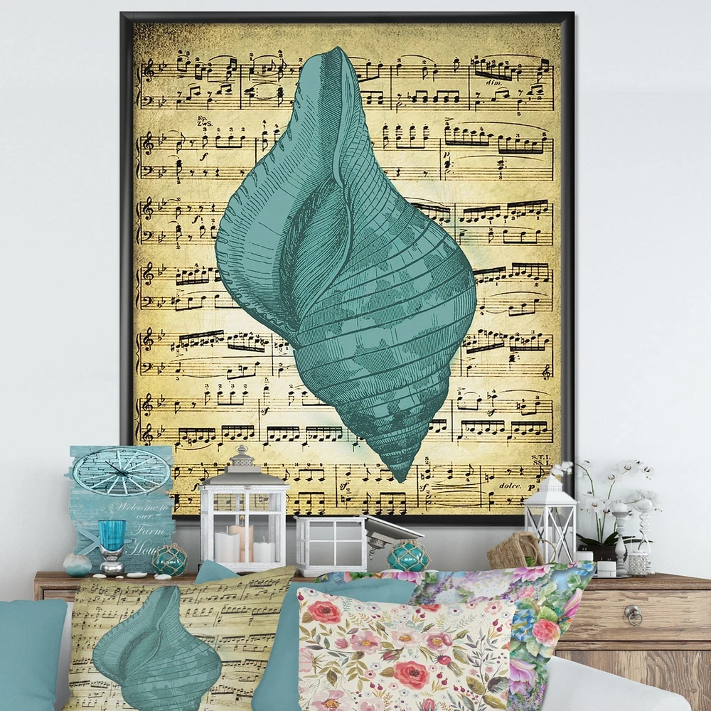 Delight the musician in your life with Designart's 'Blue Sea 2' nautical print on canvas. A rich blue conch shell atop vintage-looking sheet music creates a captivating focal point when displayed above a piano. This coastal-themed giclee print is made using fine fade-resistant inks and a premium cotton artist's canvas to ensure the imagery remains vibrant and details stay clear over time. A variety of finish choices for the wooden frame lets you select the perfect match for the existing design scheme in your recipient's home.This framed art print is available in many different color frames. All of our framed art prints are carefully packaged with corner protectors, fragile labeling, and sturdy boxes to ensure a safe delivery. Every framed art arrives ready to hang on the wall, with the Free Shipping Over $49.99* Details Designart "Blue Sea 2" Nautical & Coastal Framed Art Print Product Description: Delight the musician in your life with Designart's 'Blue Sea 2' nautical print on canvas. A rich blue conch shell atop vintage-looking sheet music creates a captivating focal point when displayed above a piano. This coastal-themed giclee print is made using fine fade-resistant inks and a premium cotton artist's canvas to ensure the imagery remains vibrant and details stay clear over time. A variety of finish choices for the wooden frame lets you select the perfect match for the existing design scheme in your recipient's home. This framed art print is available in many different color frames. All of our framed art prints are carefully packaged with corner protectors, fragile labeling, and sturdy boxes to ensure a safe delivery. Every framed art arrives ready to hang on the wall, with the hanging kit included. Features: Style Traditional Subject Beach Color Blue Premium quality cotton canvas mounted. Available in several frame colors. Arrives with instructions and hanging kit