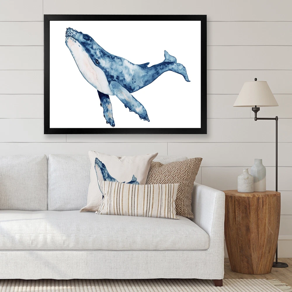This beautiful Blue Whale On White II Framed wall Art is printed using the highest quality fade resistant ink on canvas. Every one of our Framed Giclee Prints is printed on premium quality canvas, using the finest quality inks which will not fade over time and then mounted and framed on a 1.5 inch wide frame.This framed art print is available in many different color frames. All of our framed art prints are carefully packaged with corner protectors, fragile labeling, and sturdy boxes to ensure a safe delivery. Every framed art arrives ready to hang on the wall, with the hanging kit included.Features:- Style : Nautical & Coastal- Subject : Animals- Color : Blue- Premium quality cotton canvas mounted.- Available in several frame colors. - Arrives with instructions and hanging kit Free Shipping Over $49.99* Details Designart "Blue Whale On White II" Nautical & Coastal Framed Art Print Product Description: This beautiful Blue Whale On White II Framed wall Art is printed using the highest quality fade resistant ink on canvas. Every one of our Framed Giclee Prints is printed on premium quality canvas, using the finest quality inks which will not fade over time and then mounted and framed on a 1.5 inch wide frame. This framed art print is available in many different color frames. All of our framed art prints are carefully packaged with corner protectors, fragile labeling, and sturdy boxes to ensure a safe delivery. Every framed art arrives ready to hang on the wall, with the hanging kit included. Features: - Style Nautical & Coastal - Subject Animals - Color Blue - Premium quality cotton canvas mounted. - Available in several frame colors. - Arrives with instructions and hanging kit