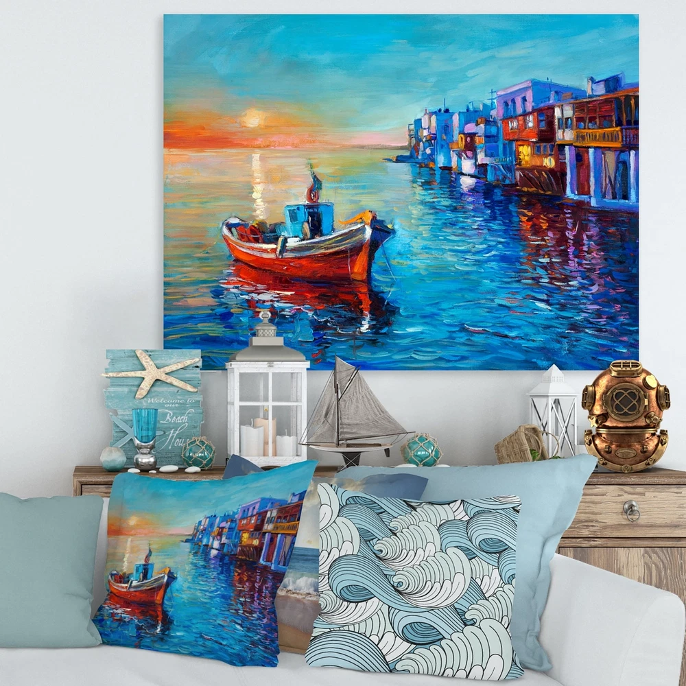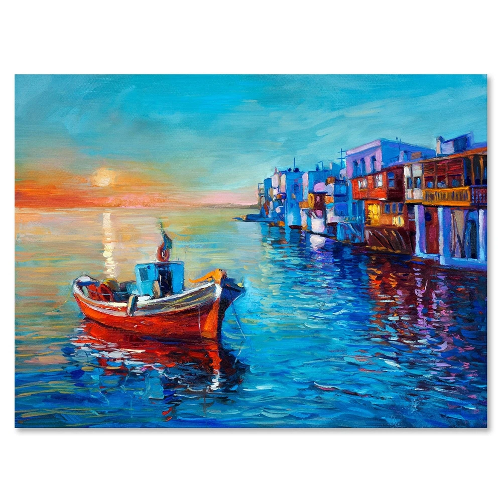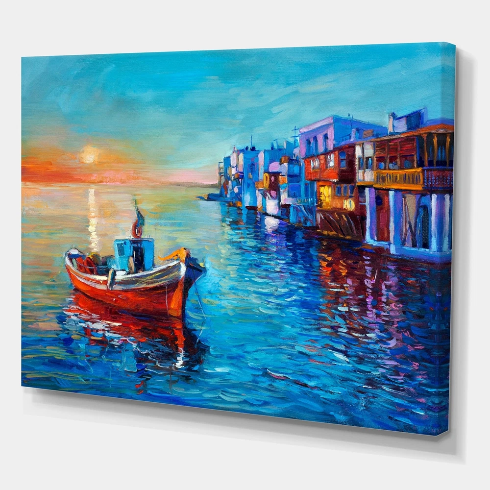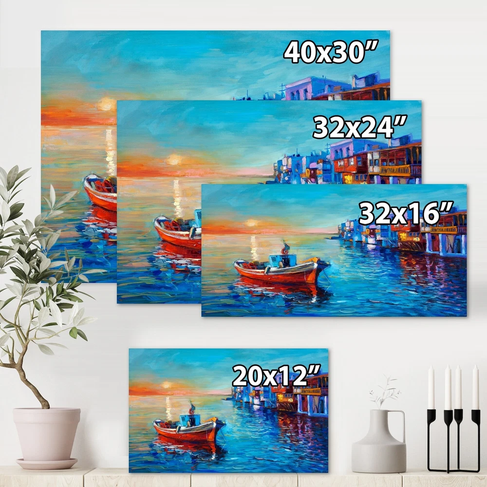 This beautiful Nautical & Coastal Canvas Art is printed using the highest quality fade resistant ink on canvas. Every one of our fine art giclee canvas prints is printed on premium quality cotton canvas, using the finest quality inks which will not fade over time. Each giclee print is stretched tightly over a 1 inch wood sub frame for small size prints or a 1.5 inch wood sub frame for large size prints (40x30 36x36 ...) ensuring the canvas is taught and does not buckle. This canvas art print is gallery-wrapped (the design continues on the sides) , giving it a real art gallery feel. All of our canvas prints are carefully packaged with plastic protection, fragile labeling and sturdy boxes to ensure a safe delivery. Every canvas print arrives ready to hang on the wall, with the hanging kits Free Shipping Over $49.99* Details Designart "Boats Resting On The Water Near Coastal Town I" Nautical & Coastal Product Description: This beautiful Nautical & Coastal Canvas Art is printed using the highest quality fade resistant ink on canvas. Every one of our fine art giclee canvas prints is printed on premium quality cotton canvas, using the finest quality inks which will not fade over time. Each giclee print is stretched tightly over a 1 inch wood sub frame for small size prints or a 1.5 inch wood sub frame for large size prints (40x30 36x36 ...) ensuring the canvas is taught and does not buckle. This canvas art print is gallery-wrapped (the design continues on the sides) , giving it a real art gallery feel. All of our canvas prints are carefully packaged with plastic protection, fragile labeling and sturdy boxes to ensure a safe delivery. Every canvas print arrives ready to hang on the wall, with the hanging kits included. - Style Nautical & Coastal,Lake House - Subject Transportation, Landscapes - Color Blue, - This canvas giclee print is gallery-wrapped (the design continues on the sides) , giving it a real art gallery feel. - Premium quality cotton canvas. - Arrives ready to hang on the wall - Easy to Hang