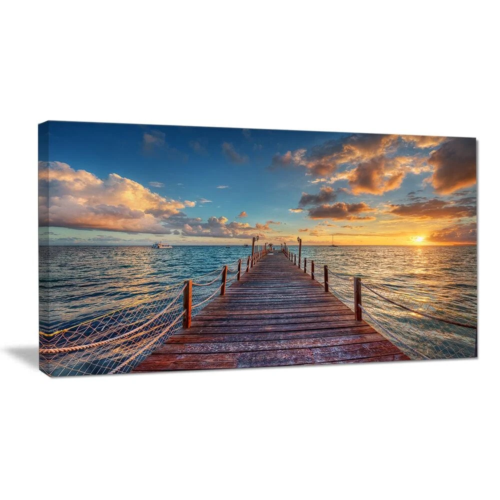 Designart "Brilliant Sunrise over Sea Pier" Modern Bridge Oversized