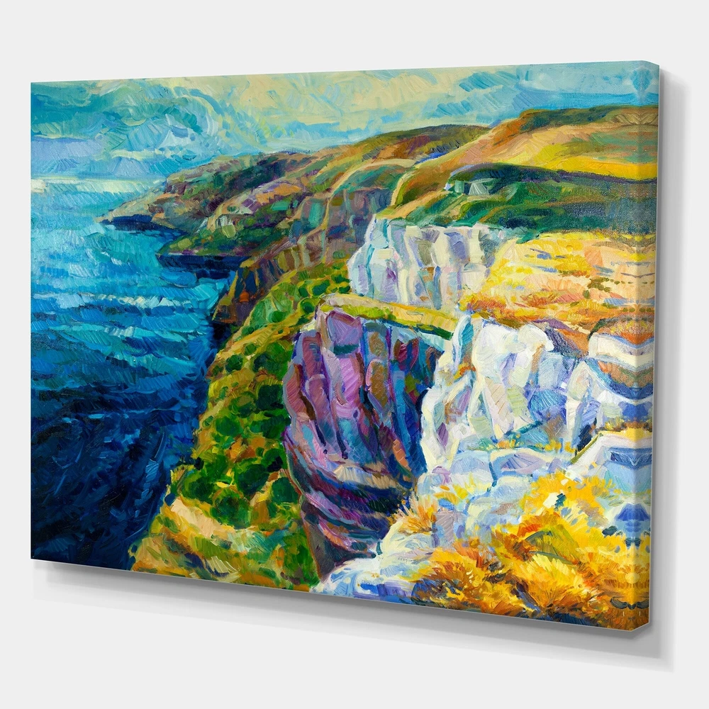 This beautiful Nautical & Coastal Canvas Art is printed using the highest quality fade resistant ink on canvas. Every one of our fine art giclee canvas prints is printed on premium quality cotton canvas, using the finest quality inks which will not fade over time. Each giclee print is stretched tightly over a 1 inch wood sub frame for small size prints or a 1.5 inch wood sub frame for large size prints (40x30 36x36 ...) ensuring the canvas is taught and does not buckle. This canvas art print is gallery-wrapped (the design continues on the sides) , giving it a real art gallery feel. All of our canvas prints are carefully packaged with plastic protection, fragile labeling and sturdy boxes to ensure a safe delivery. Every canvas print arrives ready to hang on the wall, with the hanging kits Free Shipping Over $49.99* Details Designart "Cliffs By The Blue Ocean II" Nautical & Coastal Canvas Wall Art Print Product Description: This beautiful Nautical & Coastal Canvas Art is printed using the highest quality fade resistant ink on canvas. Every one of our fine art giclee canvas prints is printed on premium quality cotton canvas, using the finest quality inks which will not fade over time. Each giclee print is stretched tightly over a 1 inch wood sub frame for small size prints or a 1.5 inch wood sub frame for large size prints (40x30 36x36 ...) ensuring the canvas is taught and does not buckle. This canvas art print is gallery-wrapped (the design continues on the sides) , giving it a real art gallery feel. All of our canvas prints are carefully packaged with plastic protection, fragile labeling and sturdy boxes to ensure a safe delivery. Every canvas print arrives ready to hang on the wall, with the hanging kits included. - Style Nautical & Coastal,Tropical - Subject Beach, Landscapes - Color Green, - This canvas giclee print is gallery-wrapped (the design continues on the sides) , giving it a real art gallery feel. - Premium quality cotton canvas. - Arrives ready to hang on the wall - Easy to Hang