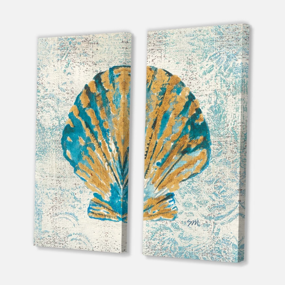 This beautiful Nautical & Coastal 2 piece set of Canvas Art is printed using the highest quality fade-resistant ink on canvas. Every one of our fine art giclee canvas prints is printed on premium quality cotton canvas, using the finest quality inks which will not fade over time. Each giclee print is stretched tightly over a 1-inch wood sub frame ensuring the canvas is taught and does not buckle. This canvas art print is gallery-wrapped (the design continues on the sides), giving it a real art gallery feel. All of our canvas prints are carefully packaged with plastic protection, fragile labeling, and sturdy boxes to ensure safe delivery. Every canvas print arrives ready to hang on the wall, with the hanging kits included.- Style : Nautical & Coastal- Subject : Beach, - Color : Blue- This Free Shipping Over $49.99* Details Designart "Coastal Pastel seashells I" Vintage Nautical Canvas Wall Art Print 2 Product Description: This beautiful Nautical & Coastal 2 piece set of Canvas Art is printed using the highest quality fade-resistant ink on canvas. Every one of our fine art giclee canvas prints is printed on premium quality cotton canvas, using the finest quality inks which will not fade over time. Each giclee print is stretched tightly over a 1-inch wood sub frame ensuring the canvas is taught and does not buckle. This canvas art print is gallery-wrapped (the design continues on the sides), giving it a real art gallery feel. All of our canvas prints are carefully packaged with plastic protection, fragile labeling, and sturdy boxes to ensure safe delivery. Every canvas print arrives ready to hang on the wall, with the hanging kits included. - Style Nautical & Coastal - Subject Beach, - Color Blue - This canvas giclee print is gallery-wrapped (the design continues on the sides), giving it a real art gallery feel. - Premium quality cotton canvas. - Arrives ready to hang on the wall - Easy to Hang
