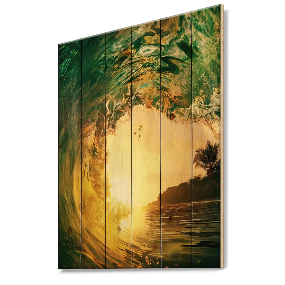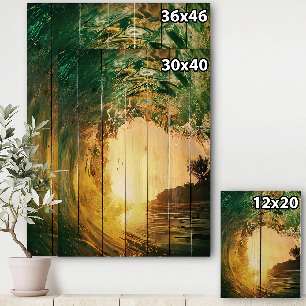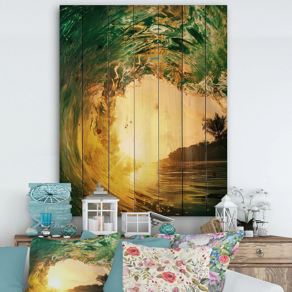 Alas, a modern take on wood wall art. Once typically a wall art piece found only in rustic or farmhouse style decor settings, this Beach wood wall art will easily fit into even the most contemporary of designs.Using the highest quality 6 Color Canon UV Ink, this Nautical & Coastal wood wall art incorporates several aspects of fine design into one stunning piece. With its slightly visible wood grain appearing through the colors and sleekly finished edges, it is a wonderful choice for any room in your home or office, being it a traditional or modern space. As each piece of wood has natural grain differences from the next, each of these wood wall arts is a truly unique addition to your space.Each Wood wall art is 100% handmade in Canada on Natural pine wood, using the highest quality ink Free Shipping Over $49.99* Details Designart 'Colored Ocean Waves Falling Down IV' Modern Seashore Print on Natural Product Description: Alas, a modern take on wood wall art. Once typically a wall art piece found only in rustic or farmhouse style decor settings, this Beach wood wall art will easily fit into even the most contemporary of designs. Using the highest quality 6 Color Canon UV Ink, this Nautical & Coastal wood wall art incorporates several aspects of fine design into one stunning piece. With its slightly visible wood grain appearing through the colors and sleekly finished edges, it is a wonderful choice for any room in your home or office, being it a traditional or modern space. As each piece of wood has natural grain differences from the next, each of these wood wall arts is a truly unique addition to your space. Each Wood wall art is 100% handmade in Canada on Natural pine wood, using the highest quality ink which will not fade over time. Available in Differents sizes - OrientationVertical - SubjectBeach TypeWood Wall Art, Fine Art, Wood Fine Art, Print on Plaque - Arrives ready to hang on the wall with hanging kit included - MaterialMade with 100% natural pine wood - StyleNautical & Coastal - Number of Pieces1 - ColorGreen