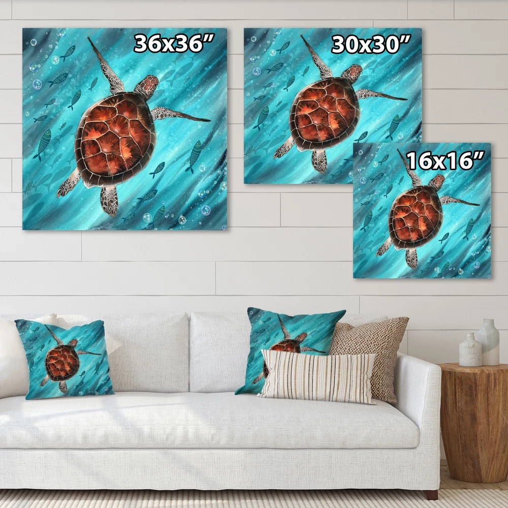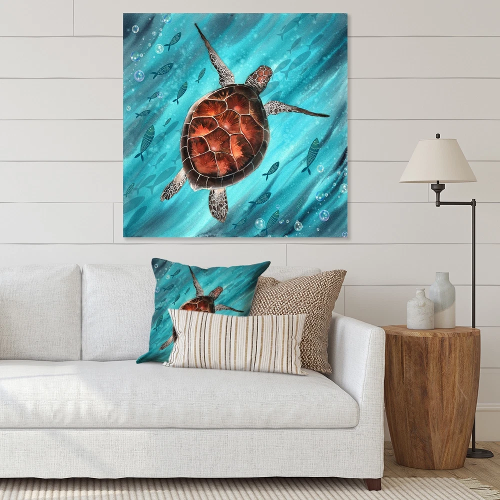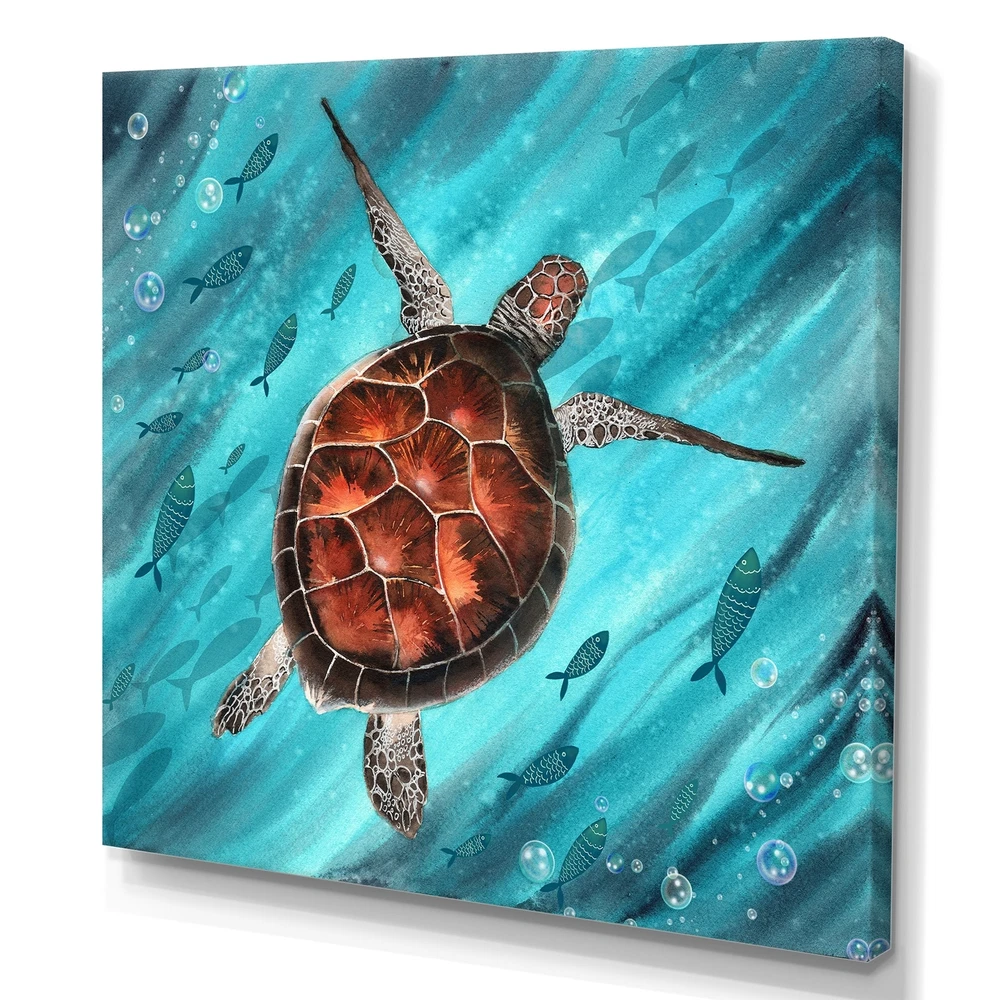 This beautiful Colorful Sea Turtle Swimming I Canvas Art is printed using the highest quality fade-resistant ink on canvas. Every one of our fine art giclee canvas prints is printed on premium quality cotton canvas, using the finest quality inks which will not fade over time. Each giclee print is stretched tightly over a 1-inch wood sub frame for small size prints or a 1.5-inch wood subframe for large size prints (40x30 60x28 ...) ensuring the canvas is taught and does not buckle. This canvas art print is gallery-wrapped (the design continues on the sides), giving it a real art gallery feel. All of our canvas prints are carefully packaged with plastic protection, fragile labeling, and sturdy boxes to ensure safe delivery. Every canvas print arrives ready to hang on the wall, with the Free Shipping Over $49.99* Details Designart "Colorful Sea Turtle Swimming I" Nautical & Coastal Canvas Wall Art Product Description: This beautiful Colorful Sea Turtle Swimming I Canvas Art is printed using the highest quality fade-resistant ink on canvas. Every one of our fine art giclee canvas prints is printed on premium quality cotton canvas, using the finest quality inks which will not fade over time. Each giclee print is stretched tightly over a 1-inch wood sub frame for small size prints or a 1.5-inch wood subframe for large size prints (40x30 60x28 ...) ensuring the canvas is taught and does not buckle. This canvas art print is gallery-wrapped (the design continues on the sides), giving it a real art gallery feel. All of our canvas prints are carefully packaged with plastic protection, fragile labeling, and sturdy boxes to ensure safe delivery. Every canvas print arrives ready to hang on the wall, with the hanging kits included. - Style Nautical & Coastal - Subject Animals, - Color Brown - This canvas giclee print is gallery-wrapped (the design continues on the sides) , giving it a real art gallery feel. - Premium quality cotton canvas. - Arrives ready to hang on the wall - Easy to Hang