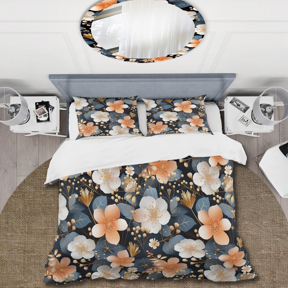 There is just nothing better than a beautiful, inviting comfortable bed after a long day. This Floral bed set is created using the richest colors stemming from high density Italian ink and the softest fabrics making it the perfect way to spruce up your bedroom, while keeping it ultra-comfortable. This luxurious Divine Dreams Floral Pattern III bed design is made with 100% microfiber polyester, making it ultra-soft to ensure you sleep comfortably all night long. This Cottage set includes 1 Bed Cover and 2 Shams and is available in twin, queen and king sizes.This Bedding Set is easily integrated into your already decorated space.What's Included? - Duvet Cover - Shams - Pillow Cases not included but can be buy separately - Comforter Insert NOT INCLUDEDFeatures - Printed Free Shipping Over $49.99* Details Designart "Divine Dreams Floral Pattern III" Green Cottage Bedding Set With Product Description: There is just nothing better than a beautiful, inviting comfortable bed after a long day. This Floral bed set is created using the richest colors stemming from high density Italian ink and the softest fabrics making it the perfect way to spruce up your bedroom, while keeping it ultra-comfortable. This luxurious Divine Dreams Floral Pattern III bed design is made with 100% microfiber polyester, making it ultra-soft to ensure you sleep comfortably all night long. This Cottage set includes 1 Bed Cover and 2 Shams and is available in twin, queen and king sizes. This Bedding Set is easily integrated into your already decorated space. What's Included? - Duvet Cover - Shams - Pillow Cases not included but can be buy separately - Comforter Insert NOT INCLUDED Features - Printed using High Density Italian Ink making the colors extra vibrant. - Made from ultra-soft, lightweight 100% microfiber polyester. Wrinkle resistant fabric. Down-like comfort, odorless. - The Cottage bed set includes one bed cover and two standard pillow shams to create a complete and stylish look. - The elegant and soft colors are both trendy and fun to brighten and update your bedroom. - Made in Canada - Decorative Wall Art and throw pillows to match this set are available but sold separately. - Actual comforter inserts and pillow inserts are not included. This set includes the two pillow shams and comforter cover only. King Dimensions: - 1 Duvet Cover104 inches wide x 88 inches long - 2 King Shams20 inches wide x 36 inches long Queen Dimensions: - 1 Duvet Cover88 inches wide x 88 inches long - 2 Standard Shams16 inches wide x 26 inches long Twin Dimensions: - 1 Duvet Cover68 inches wide x 88 inches long - 1 Standard Sham16 inches wide x 26 inches long Product Details - MaterialPolyester. - PatternFloral - ColorPeach; Green - StyleCottage; traditional - ReversibleNo Directions: Fabric Care InstructionsMachine wash on cold gentle cycle. Wash separately on first wash. Use only non- chlorine bleach when needed. Tumble dry low. Remove promptly.
