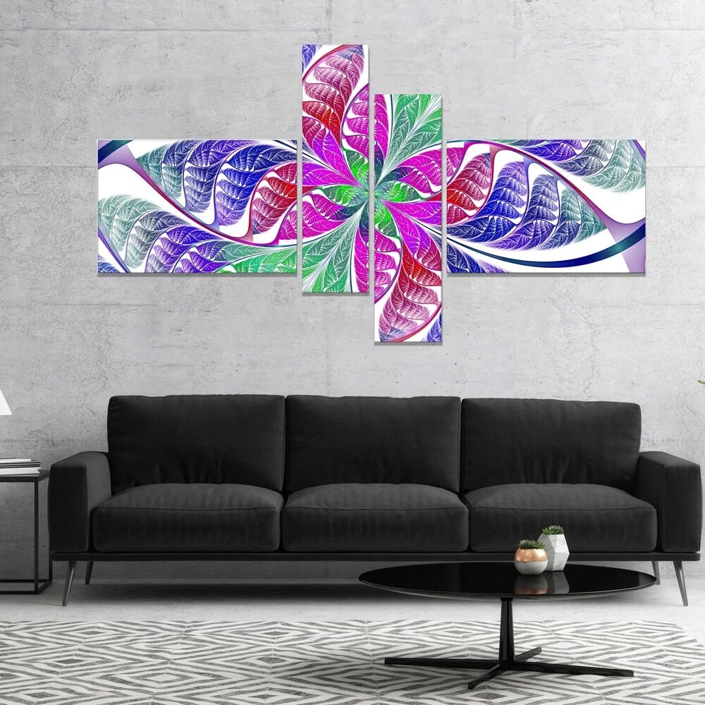 This beautiful Abstract Canvas Art is printed using the highest quality fade resistant ink on canvas. Every one of our fine art giclee canvas prints is printed on premium quality cotton canvas, using the finest quality inks which will not fade over time. Each giclee print is stretched tightly over a 1 inch wood sub frame ensuring the canvas is taught and does not buckle. This canvas art print is gallery-wrapped (the design continues on the sides) , giving it a real art gallery feel. All of our canvas prints are carefully packaged in inflated cushion wrap, fragile labeling and sturdy boxes to ensure a safe delivery. Every canvas print arrives ready to hang on the wall, with the hanging kits included. Shape: RectangleOrientation: HorizontalSubject: AbstractStyle: Contemporary, Fine Art Free Shipping Over $49.99* Details Designart "Flower like Fractal Stained Glass" Abstract Wall Art Canvas Product Description: This beautiful Abstract Canvas Art is printed using the highest quality fade resistant ink on canvas. Every one of our fine art giclee canvas prints is printed on premium quality cotton canvas, using the finest quality inks which will not fade over time. Each giclee print is stretched tightly over a 1 inch wood sub frame ensuring the canvas is taught and does not buckle. This canvas art print is gallery-wrapped (the design continues on the sides) , giving it a real art gallery feel. All of our canvas prints are carefully packaged in inflated cushion wrap, fragile labeling and sturdy boxes to ensure a safe delivery. Every canvas print arrives ready to hang on the wall, with the hanging kits included. ShapeRectangle OrientationHorizontal SubjectAbstract StyleContemporary, Fine Art Giclee, Modern Size32 inches high x 60 inches wide x 1 inch long