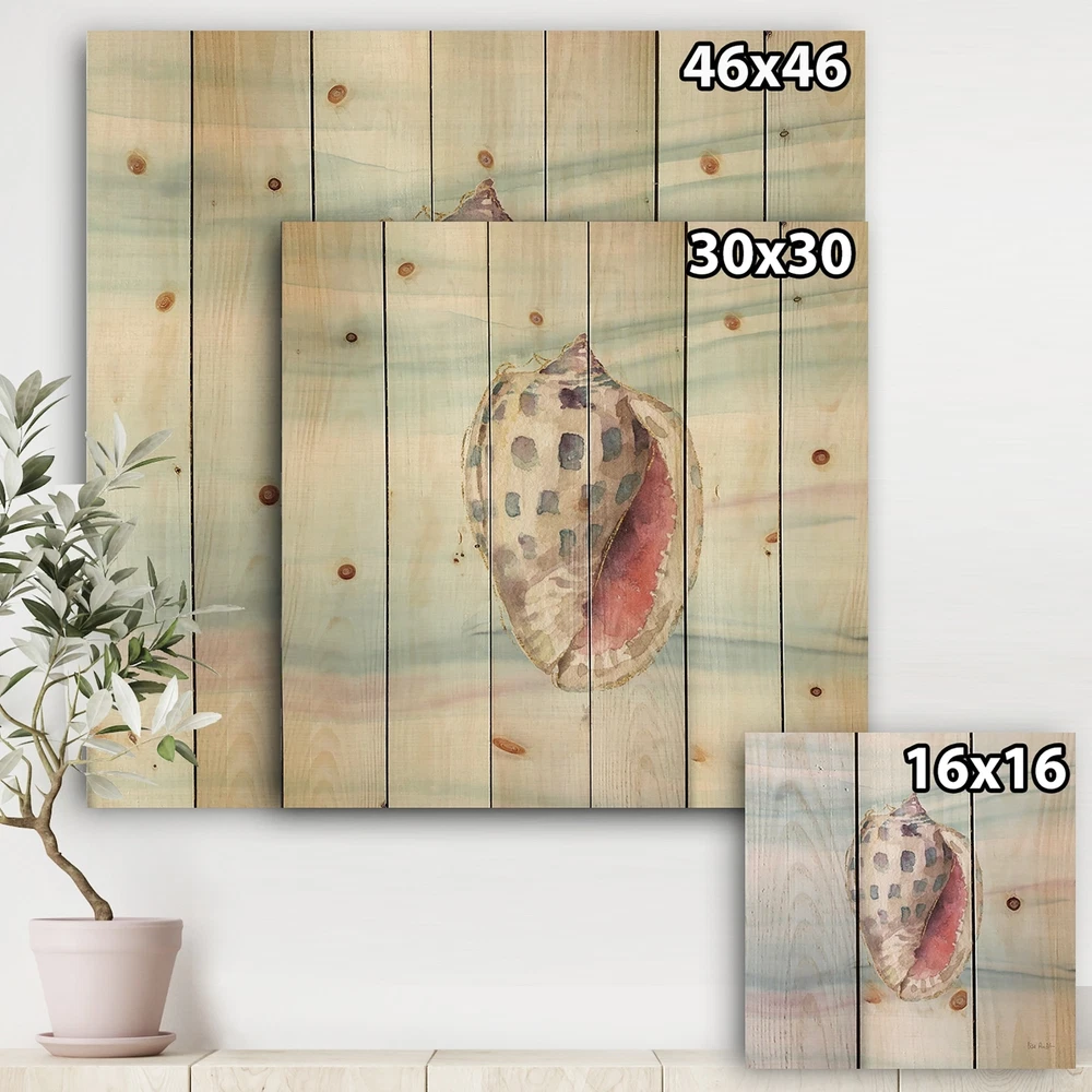 Alas, a modern take on wood wall art. Once typically a wall art piece found only in rustic or farmhouse style decor settings, this Animals wood wall art will easily fit into even the most contemporary of designs.Using the highest quality 6 Color Canon UV Ink, this Nautical & Coastal wood wall art incorporates several aspects of fine design into one stunning piece. With its slightly visible wood grain appearing through the colors and sleekly finished edges, it is a wonderful choice for any room in your home or office, being it a traditional or modern space. As each piece of wood has natural grain differences from the next, each of these wood wall arts is a truly unique addition to your space.Each Wood wall art is 100% handmade in Canada on Natural pine wood, using the highest quality ink Free Shipping Over $49.99* Details Designart 'Gilded Sea Horn Shell on Blue' Nautical & Coastal Print on Natural Product Description: Alas, a modern take on wood wall art. Once typically a wall art piece found only in rustic or farmhouse style decor settings, this Animals wood wall art will easily fit into even the most contemporary of designs. Using the highest quality 6 Color Canon UV Ink, this Nautical & Coastal wood wall art incorporates several aspects of fine design into one stunning piece. With its slightly visible wood grain appearing through the colors and sleekly finished edges, it is a wonderful choice for any room in your home or office, being it a traditional or modern space. As each piece of wood has natural grain differences from the next, each of these wood wall arts is a truly unique addition to your space. Each Wood wall art is 100% handmade in Canada on Natural pine wood, using the highest quality ink which will not fade over time. Available in Differents sizes - OrientationSQUARE - SubjectAnimals TypeWood Wall Art, Fine Art, Wood Fine Art, Print on Plaque - Arrives ready to hang on the wall with hanging kit included - MaterialMade with 100% natural pine wood - StyleNautical & Coastal - Number of Pieces1 - ColorBlue