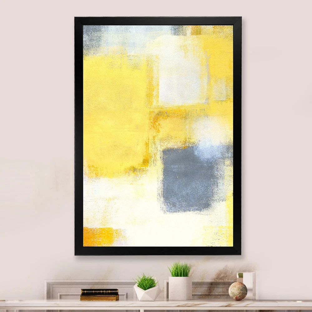 This beautiful Grey Meets Yellow Modern Art XVI Framed wall Art is printed using the highest quality fade resistant ink on canvas. Every one of our Framed Giclee Prints is printed on premium quality canvas, using the finest quality inks which will not fade over time and then mounted and framed on a 1.5 inch wide frame.This framed art print is available in many different color frames. All of our framed art prints are carefully packaged with corner protectors, fragile labeling, and sturdy boxes to ensure a safe delivery. Every framed art arrives ready to hang on the wall, with the hanging kit included.Features:- Style : Modern & Contemporary- Subject : Abstract, Abstract & Fractals- Color : Yellow- Premium quality cotton canvas mounted.- Available in several frame colors. - Arrives with Free Shipping Over $49.99* Details Designart "Grey Meets Yellow Modern Art XVI" Modern Framed Wall Decor Product Description: This beautiful Grey Meets Yellow Modern Art XVI Framed wall Art is printed using the highest quality fade resistant ink on canvas. Every one of our Framed Giclee Prints is printed on premium quality canvas, using the finest quality inks which will not fade over time and then mounted and framed on a 1.5 inch wide frame. This framed art print is available in many different color frames. All of our framed art prints are carefully packaged with corner protectors, fragile labeling, and sturdy boxes to ensure a safe delivery. Every framed art arrives ready to hang on the wall, with the hanging kit included. Features: - Style Modern & Contemporary - Subject Abstract, Abstract & Fractals - Color Yellow - Premium quality cotton canvas mounted. - Available in several frame colors. - Arrives with instructions and hanging kit