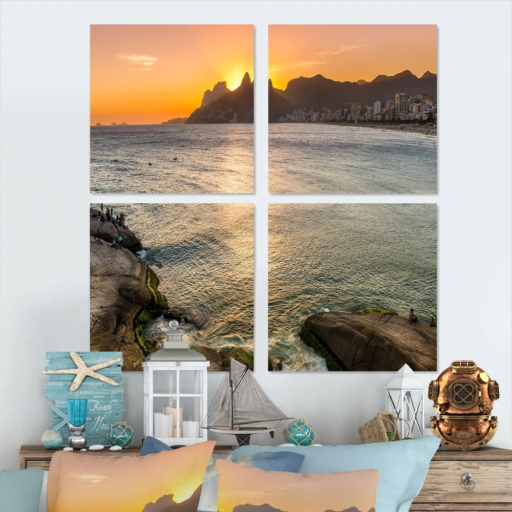This beautiful Ipanema in Rio de Janeiro Sunset Multipanels canvas art is printed using the highest quality fade-resistant ink on canvas. Every one of our fine art giclee canvas prints is printed on premium quality cotton canvas, using the finest quality inks which will not fade over time. Each giclee print is stretched tightly over a 1-inch wood subframe ensuring the canvas is taught and does not buckle. This canvas art print is gallery-wrapped (the design continues on the sides), giving it a real art gallery feel. All of our canvas prints are carefully packaged with plastic protection, fragile labeling, and sturdy boxes to ensure safe delivery. Every canvas print arrives ready to hang on the wall, with the hanging kits included.- Style : Nautical & Coastal- Subject : Beach- Color : Free Shipping Over $49.99* Details Designart "Ipanema in Rio de Janeiro Sunset" Sea & Shore Canvas Wall Art Print Product Description: This beautiful Ipanema in Rio de Janeiro Sunset Multipanels canvas art is printed using the highest quality fade-resistant ink on canvas. Every one of our fine art giclee canvas prints is printed on premium quality cotton canvas, using the finest quality inks which will not fade over time. Each giclee print is stretched tightly over a 1-inch wood subframe ensuring the canvas is taught and does not buckle. This canvas art print is gallery-wrapped (the design continues on the sides), giving it a real art gallery feel. All of our canvas prints are carefully packaged with plastic protection, fragile labeling, and sturdy boxes to ensure safe delivery. Every canvas print arrives ready to hang on the wall, with the hanging kits included. - Style Nautical & Coastal - Subject Beach - Color Multi-Color - This canvas giclee print is gallery-wrapped (the design continues on the sides) , giving it a real art gallery feel. - Premium quality cotton canvas. - Arrives ready to hang on the wall - Easy to Hang