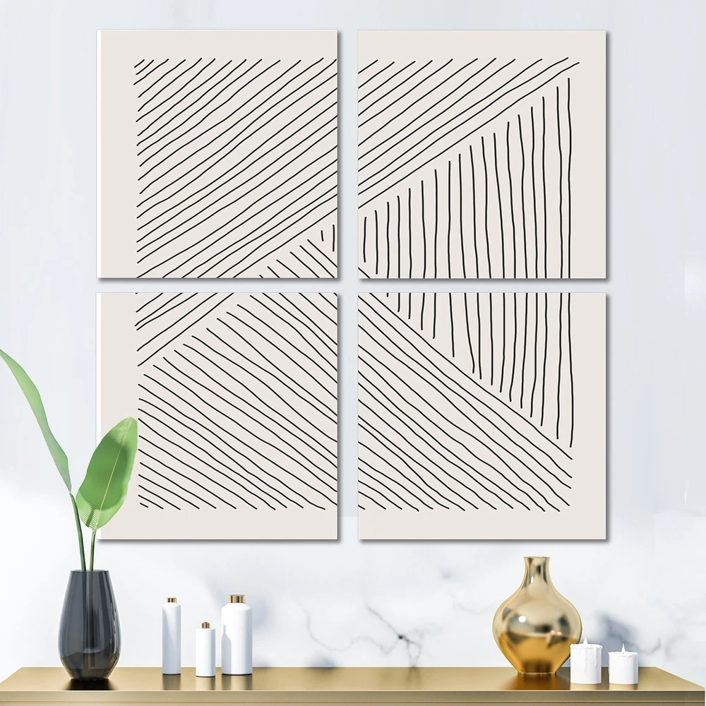 This beautiful Minimal Geometric Lines II Multipanels canvas art is printed using the highest quality fade-resistant ink on canvas. Every one of our fine art giclee canvas prints is printed on premium quality cotton canvas, using the finest quality inks which will not fade over time. Each giclee print is stretched tightly over a 1-inch wood subframe ensuring the canvas is taught and does not buckle. This canvas art print is gallery-wrapped (the design continues on the sides), giving it a real art gallery feel. All of our canvas prints are carefully packaged with plastic protection, fragile labeling, and sturdy boxes to ensure safe delivery. Every canvas print arrives ready to hang on the wall, with the hanging kits included.- Style : Modern & Contemporary- Subject : Abstract- Color : Free Shipping Over $49.99* Details Designart "Minimal Geometric Lines II" Modern Canvas Wall Art Print Product Description: This beautiful Minimal Geometric Lines II Multipanels canvas art is printed using the highest quality fade-resistant ink on canvas. Every one of our fine art giclee canvas prints is printed on premium quality cotton canvas, using the finest quality inks which will not fade over time. Each giclee print is stretched tightly over a 1-inch wood subframe ensuring the canvas is taught and does not buckle. This canvas art print is gallery-wrapped (the design continues on the sides), giving it a real art gallery feel. All of our canvas prints are carefully packaged with plastic protection, fragile labeling, and sturdy boxes to ensure safe delivery. Every canvas print arrives ready to hang on the wall, with the hanging kits included. - Style Modern & Contemporary - Subject Abstract - Color Black - This canvas giclee print is gallery-wrapped (the design continues on the sides) , giving it a real art gallery feel. - Premium quality cotton canvas. - Arrives ready to hang on the wall - Easy to Hang