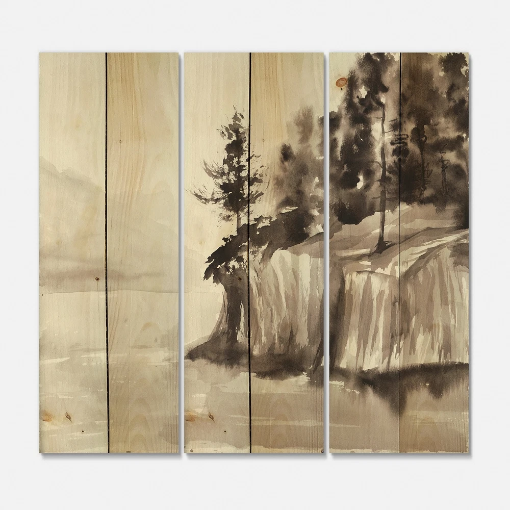Alas, a modern take on wood wall art. Once typically a wall art piece found only in rustic or farmhouse style decor settings, this Landscapes wood wall art will easily fit into even the most contemporary of designs.Using the highest quality 6 Color Canon UV Ink, this Nautical & Coastal wood wall art incorporates several aspects of fine design into one stunning piece. With its slightly visible wood grain appearing through the colors and sleekly finished edges, it is a wonderful choice for any room in your home or office, being it a traditional or modern space. As each piece of wood has natural grain differences from the next, each of these wood wall arts is a truly unique addition to your space.Each Wood wall art is 100% handmade in Canada on Natural pine wood, using the highest quality ink Free Shipping Over $49.99* Details Designart 'Monochrome Cliffs By The Lake' Nautical & Coastal Print on Natural Product Description: Alas, a modern take on wood wall art. Once typically a wall art piece found only in rustic or farmhouse style decor settings, this Landscapes wood wall art will easily fit into even the most contemporary of designs. Using the highest quality 6 Color Canon UV Ink, this Nautical & Coastal wood wall art incorporates several aspects of fine design into one stunning piece. With its slightly visible wood grain appearing through the colors and sleekly finished edges, it is a wonderful choice for any room in your home or office, being it a traditional or modern space. As each piece of wood has natural grain differences from the next, each of these wood wall arts is a truly unique addition to your space. Each Wood wall art is 100% handmade in Canada on Natural pine wood, using the highest quality ink which will not fade over time. - OrientationHorizontal - SubjectLandscapes TypeWood Wall Art, Fine Art, Wood Fine Art, Print on Plaque - Arrives ready to hang on the wall with hanging kit included - MaterialMade with 100% natural pine wood - StyleNautical & Coastal - Number of Pieces3 - ColorGrey