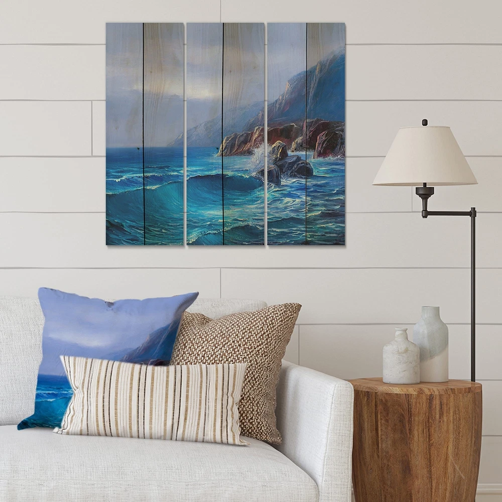 Alas, a modern take on wood wall art. Once typically a wall art piece found only in rustic or farmhouse style decor settings, this Beach wood wall art will easily fit into even the most contemporary of designs.Using the highest quality 6 Color Canon UV Ink, this Nautical & Coastal wood wall art incorporates several aspects of fine design into one stunning piece. With its slightly visible wood grain appearing through the colors and sleekly finished edges, it is a wonderful choice for any room in your home or office, being it a traditional or modern space. As each piece of wood has natural grain differences from the next, each of these wood wall arts is a truly unique addition to your space.Each Wood wall art is 100% handmade in Canada on Natural pine wood, using the highest quality ink Free Shipping Over $49.99* Details Designart 'Morning On Sea Wave Paints On A Canvas' Nautical & Coastal Print on Product Description: Alas, a modern take on wood wall art. Once typically a wall art piece found only in rustic or farmhouse style decor settings, this Beach wood wall art will easily fit into even the most contemporary of designs. Using the highest quality 6 Color Canon UV Ink, this Nautical & Coastal wood wall art incorporates several aspects of fine design into one stunning piece. With its slightly visible wood grain appearing through the colors and sleekly finished edges, it is a wonderful choice for any room in your home or office, being it a traditional or modern space. As each piece of wood has natural grain differences from the next, each of these wood wall arts is a truly unique addition to your space. Each Wood wall art is 100% handmade in Canada on Natural pine wood, using the highest quality ink which will not fade over time. - OrientationHorizontal - SubjectBeach TypeWood Wall Art, Fine Art, Wood Fine Art, Print on Plaque - Arrives ready to hang on the wall with hanging kit included - MaterialMade with 100% natural pine wood - StyleNautical & Coastal - Number of Pieces3 - ColorBlue