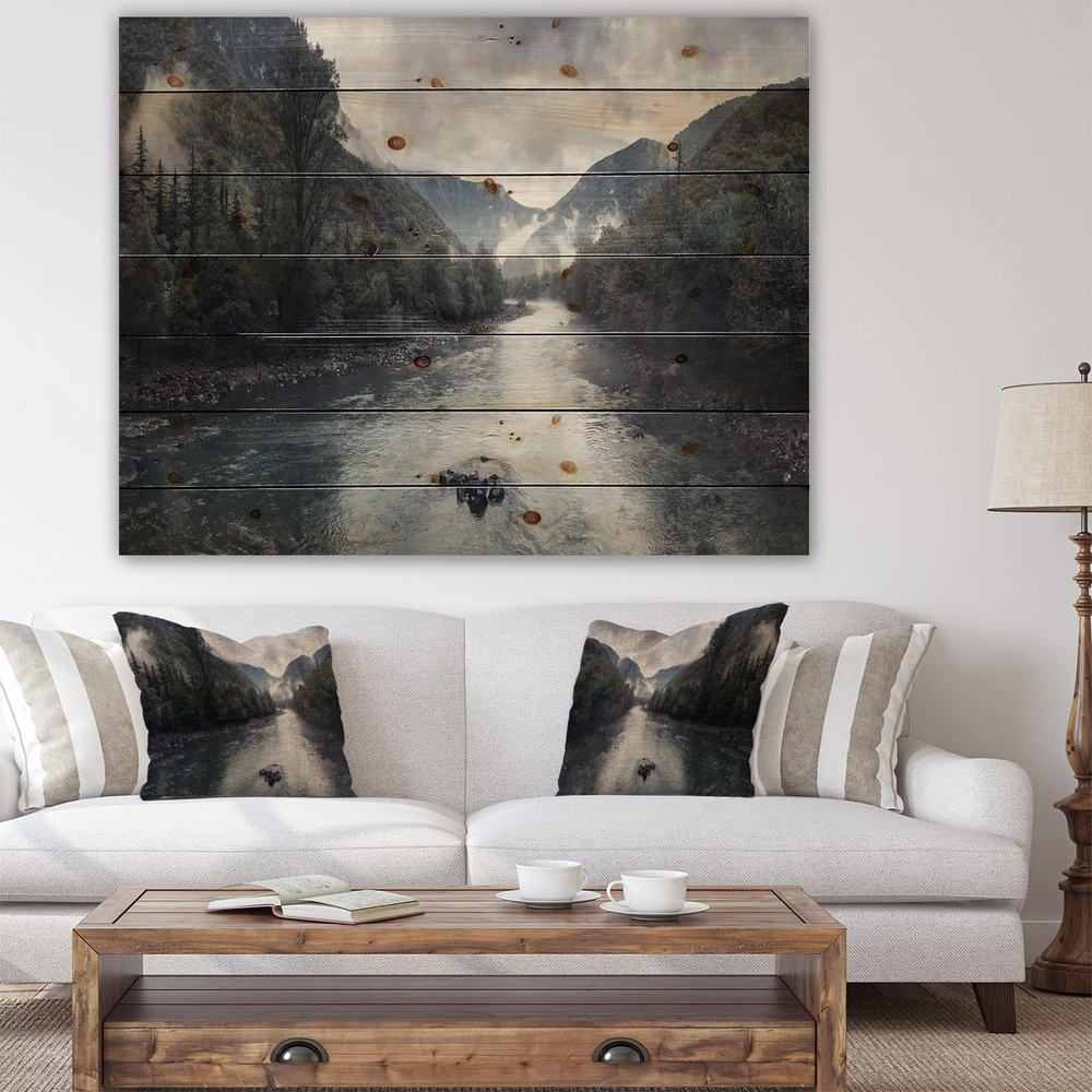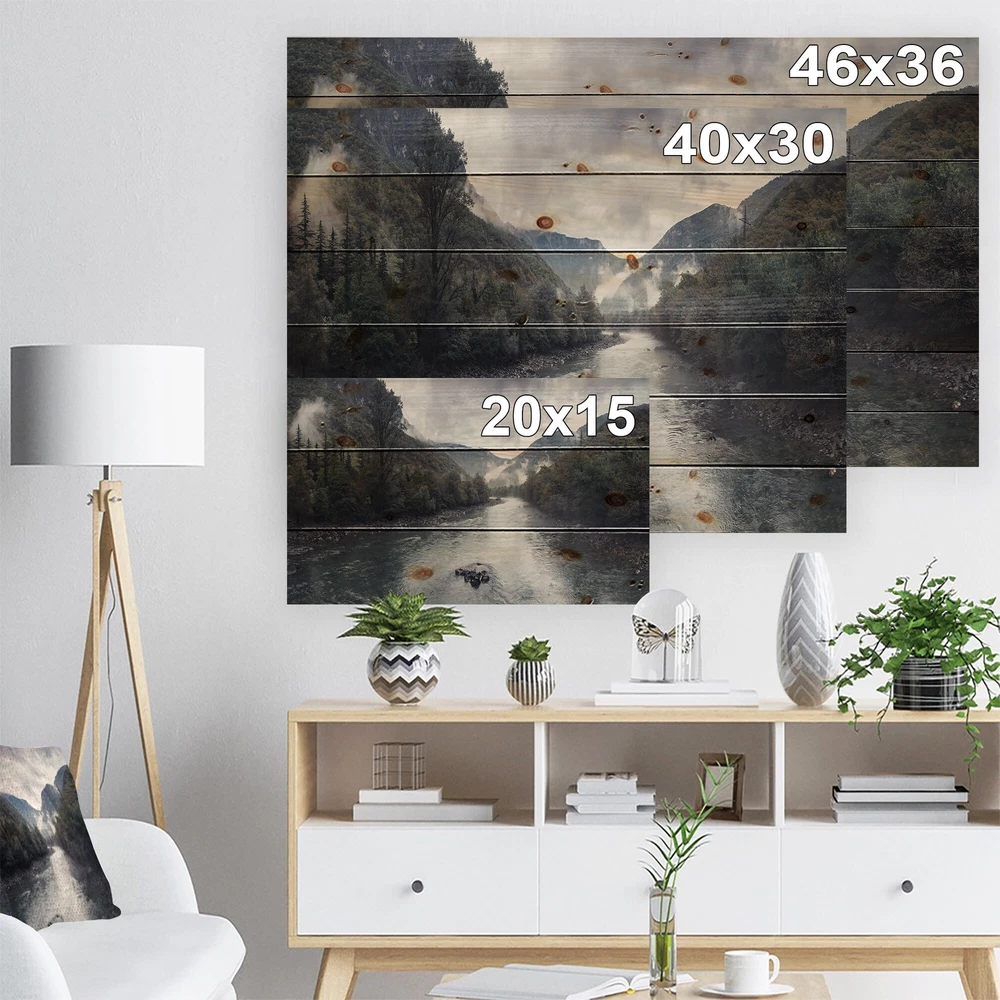 Alas, a modern take on wood wall art. Once typically a wall art piece found only in rustic or farmhouse style decor settings, this Sea & Shore wood wall art will easily fit into even the most contemporary of designs.Using the highest quality 6 Color Canon UV Ink, this Nautical & Coastal wood wall art incorporates several aspects of fine design into one stunning piece. With its slightly visible wood grain appearing through the colors and sleekly finished edges, it is a wonderful choice for any room in your home or office, being it a traditional or modern space. As each piece of wood has natural grain differences from the next, each of these wood wall arts is a truly unique addition to your space.Each Wood wall art is 100% handmade in Canada on Natural pine wood, using the highest quality Free Shipping Over $49.99* Details Designart 'Mountain River with Fog and Rain' Modern Seascape Print on Natural Product Description: Alas, a modern take on wood wall art. Once typically a wall art piece found only in rustic or farmhouse style decor settings, this Sea & Shore wood wall art will easily fit into even the most contemporary of designs. Using the highest quality 6 Color Canon UV Ink, this Nautical & Coastal wood wall art incorporates several aspects of fine design into one stunning piece. With its slightly visible wood grain appearing through the colors and sleekly finished edges, it is a wonderful choice for any room in your home or office, being it a traditional or modern space. As each piece of wood has natural grain differences from the next, each of these wood wall arts is a truly unique addition to your space. Each Wood wall art is 100% handmade in Canada on Natural pine wood, using the highest quality ink which will not fade over time. Available in 3 Differents sizes 20x15, 40x30, 46x36 - OrientationHorizontal - SubjectSea & Shore TypeWood Wall Art, Fine Art, Wood Fine Art, Print on Plaque - Arrives ready to hang on the wall with hanging kit included - MaterialMade with 100% natural pine wood - StyleNautical & Coastal- Number of Pieces1 - SizeMedium, Large, Small - ColorGreen