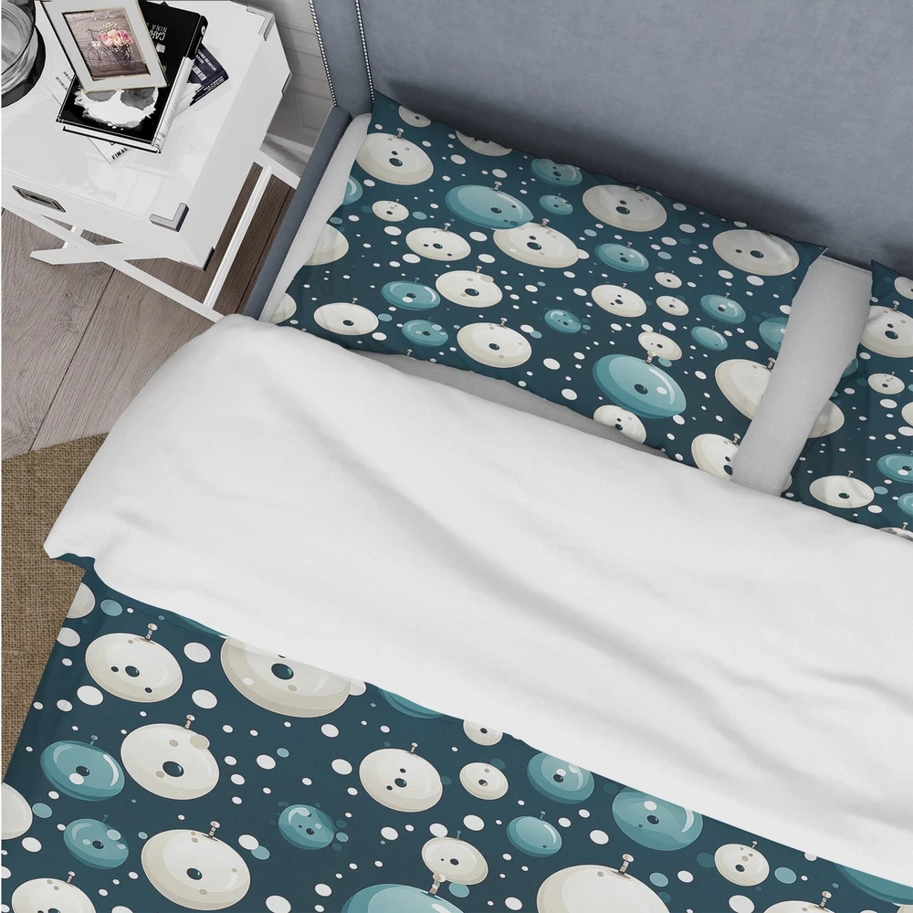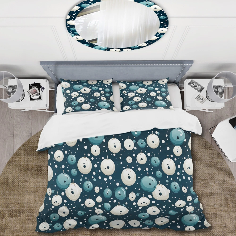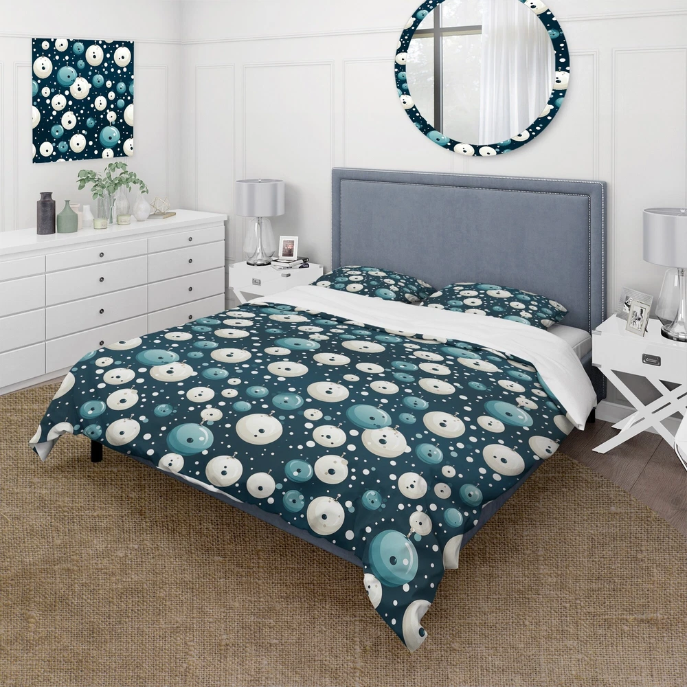 There is just nothing better than a beautiful, inviting comfortable bed after a long day. This Graphic Print, Geometric bed set is created using the richest colors stemming from high density Italian ink and the softest fabrics making it the perfect way to spruce up your bedroom, while keeping it ultra-comfortable. This luxurious Nautical Allure Polka Dots Pattern I bed design is made with 100% microfiber polyester, making it ultra-soft to ensure you sleep comfortably all night long. This Modern & Contemporary set includes 1 Bed Cover and 2 Shams and is available in twin, queen and king sizes.This Bedding Set is easily integrated into your already decorated space.What's Included? - Duvet Cover - Shams - Pillow Cases not included but can be buy separately - Comforter Insert Free Shipping Over $49.99* Details Designart "Nautical Allure Polka Dots Pattern I" Modern Bed Cover Set With 2 Product Description: There is just nothing better than a beautiful, inviting comfortable bed after a long day. This Graphic Print, Geometric bed set is created using the richest colors stemming from high density Italian ink and the softest fabrics making it the perfect way to spruce up your bedroom, while keeping it ultra-comfortable. This luxurious Nautical Allure Polka Dots Pattern I bed design is made with 100% microfiber polyester, making it ultra-soft to ensure you sleep comfortably all night long. This Modern & Contemporary set includes 1 Bed Cover and 2 Shams and is available in twin, queen and king sizes. This Bedding Set is easily integrated into your already decorated space. What's Included? - Duvet Cover - Shams - Pillow Cases not included but can be buy separately - Comforter Insert NOT INCLUDED Features - Printed using High Density Italian Ink making the colors extra vibrant. - Made from ultra-soft, lightweight 100% microfiber polyester. Wrinkle resistant fabric. Down-like comfort, odorless. - The Modern & Contemporary bed set includes one bed cover and two standard pillow shams to create a complete and stylish look. - The elegant and soft colors are both trendy and fun to brighten and update your bedroom. - Made in Canada - Decorative Wall Art and throw pillows to match this set are available but sold separately. - Actual comforter inserts and pillow inserts are not included. This set includes the two pillow shams and comforter cover only. King Dimensions: - 1 Duvet Cover104 inches wide x 88 inches long - 2 King Shams20 inches wide x 36 inches long Queen Dimensions: - 1 Duvet Cover88 inches wide x 88 inches long - 2 Standard Shams16 inches wide x 26 inches long Twin Dimensions: - 1 Duvet Cover68 inches wide x 88 inches long - 1 Standard Sham16 inches wide x 26 inches long Product Details - MaterialPolyester. - PatternPolka Dots - ColorBlue - StyleModern & Contemporary - ReversibleNo Directions: Fabric Care InstructionsMachine wash on cold gentle cycle. Wash separately on first wash. Use only non- chlorine bleach when needed. Tumble dry low. Remove promptly.