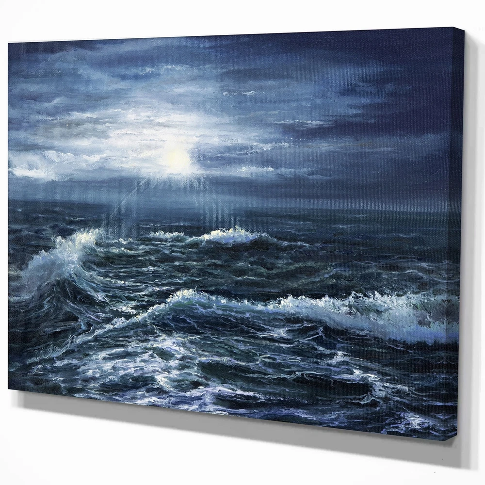 This beautiful art is printed using the highest quality fade resistant ink on canvas. Every one of our fine art giclee canvas prints is printed on premium quality cotton canvas, using the finest quality inks which will not fade over time. Each giclee print is stretched tightly over a 1 inch wood sub frame ensuring the canvas is taught and does not buckle. This canvas giclee print is gallery-wrapped (the design continues on the sides) , giving it a real art gallery feel. Premium quality cotton canvas. Arrives ready to hang on the wall Easy to Hang Free Shipping Over $49.99* Details Designart "Ocean Waves in Dartk Sky" Nautical Print on Wrapped Canvas Product Description: This beautiful art is printed using the highest quality fade resistant ink on canvas. Every one of our fine art giclee canvas prints is printed on premium quality cotton canvas, using the finest quality inks which will not fade over time. Each giclee print is stretched tightly over a 1 inch wood sub frame ensuring the canvas is taught and does not buckle. This canvas giclee print is gallery-wrapped (the design continues on the sides) , giving it a real art gallery feel. Premium quality cotton canvas. Arrives ready to hang on the wall Easy to Hang