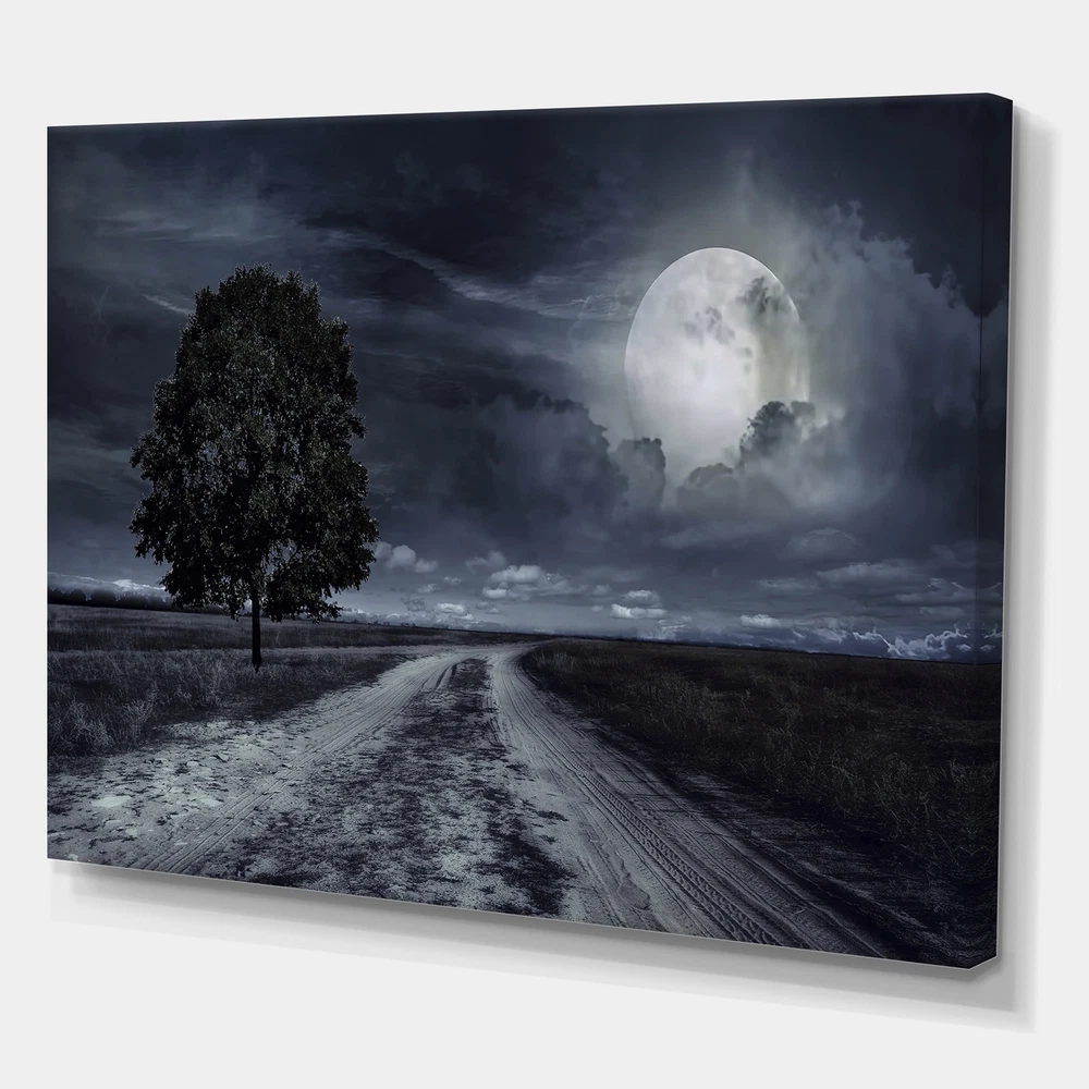 This beautiful Nautical & Coastal Canvas Art is printed using the highest quality fade resistant ink on canvas. Every one of our fine art giclee canvas prints is printed on premium quality cotton canvas, using the finest quality inks which will not fade over time. Each giclee print is stretched tightly over a 1 inch wood sub frame for small size prints or a 1.5 inch wood sub frame for large size prints (40x30 36x36 ...) ensuring the canvas is taught and does not buckle. This canvas art print is gallery-wrapped (the design continues on the sides) , giving it a real art gallery feel. All of our canvas prints are carefully packaged with plastic protection, fragile labeling and sturdy boxes to ensure a safe delivery. Every canvas print arrives ready to hang on the wall, with the hanging kits Free Shipping Over $49.99* Details Designart "Paved Road Under A Full Moon" Nautical & Coastal Canvas Wall Art Product Description: This beautiful Nautical & Coastal Canvas Art is printed using the highest quality fade resistant ink on canvas. Every one of our fine art giclee canvas prints is printed on premium quality cotton canvas, using the finest quality inks which will not fade over time. Each giclee print is stretched tightly over a 1 inch wood sub frame for small size prints or a 1.5 inch wood sub frame for large size prints (40x30 36x36 ...) ensuring the canvas is taught and does not buckle. This canvas art print is gallery-wrapped (the design continues on the sides) , giving it a real art gallery feel. All of our canvas prints are carefully packaged with plastic protection, fragile labeling and sturdy boxes to ensure a safe delivery. Every canvas print arrives ready to hang on the wall, with the hanging kits included. - Style Nautical & Coastal,Country - Subject Landscapes, Photography - Color Black,White - This canvas giclee print is gallery-wrapped (the design continues on the sides) , giving it a real art gallery feel. - Premium quality cotton canvas. - Arrives ready to hang on the wall - Easy to Hang
