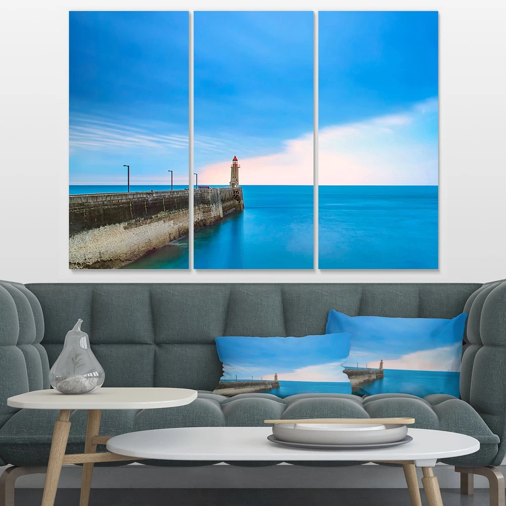 This beautiful Sea & Shore Canvas Art is printed using the highest quality fade resistant ink on canvas. Every one of our fine art giclee canvas prints is printed on premium quality cotton canvas, using the finest quality inks which will not fade over time. Each giclee print is stretched tightly over a 1 inch wood sub frame ensuring the canvas is taught and does not buckle. This canvas art print is gallery-wrapped (the design continues on the sides) , giving it a real art gallery feel. All of our canvas prints are carefully packaged with plastic protection, fragile labeling and sturdy boxes to ensure a safe delivery. Every canvas print arrives ready to hang on the wall, with the hanging kits included.- Style : Nautical & Coastal- Subject : Sea & Shore, Nautical- Color : Blue- This canvas Free Shipping Over $49.99* Details Designart "Pier and Lightour in Sunset" Seascape Canvas Art Print - 36x28 - 3 Product Description: This beautiful Sea & Shore Canvas Art is printed using the highest quality fade resistant ink on canvas. Every one of our fine art giclee canvas prints is printed on premium quality cotton canvas, using the finest quality inks which will not fade over time. Each giclee print is stretched tightly over a 1 inch wood sub frame ensuring the canvas is taught and does not buckle. This canvas art print is gallery-wrapped (the design continues on the sides) , giving it a real art gallery feel. All of our canvas prints are carefully packaged with plastic protection, fragile labeling and sturdy boxes to ensure a safe delivery. Every canvas print arrives ready to hang on the wall, with the hanging kits included. - Style Nautical & Coastal - Subject Sea & Shore, Nautical - Color Blue - This canvas giclee print is gallery-wrapped (the design continues on the sides) , giving it a real art gallery feel. - Premium quality cotton canvas. - Arrives ready to hang on the wall - Easy to Hang