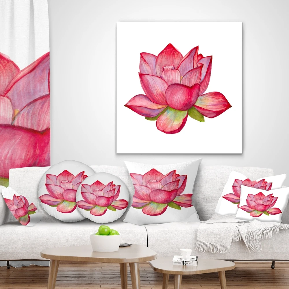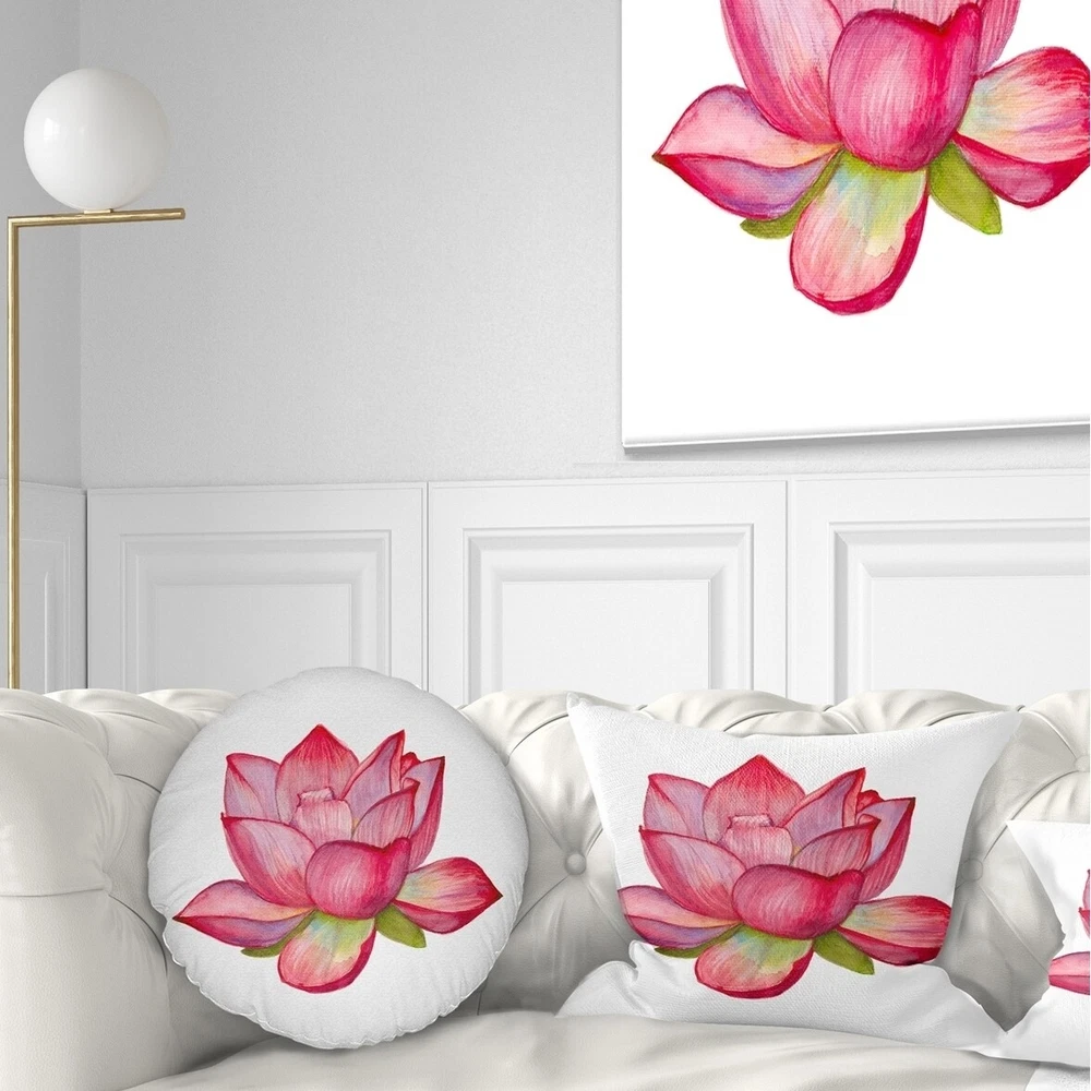 Decorative Throw Pillows for Couch Bed Sofa with Zip CoversAn easy, fun way to add a pop of color or bring new life to any room in your home or office is with these beautiful Floral throw pillows. Dress up your bed, sofa or lounger with this decorative design art pillows. Perfect as Farmhouse bedroom décor, lounge décor Traditional living room décor. It adds a fun accent to any room. Throw pillows really do work wonders: they can transform any room from uninviting discomfort to warm and welcoming. And they really do go almost anywhere - arrange a couple on the couch or sofa, place one in your overstuffed chair for extra coziness, toss a couple on the bed and prop yourself up for a great read.These Floral pillow is printed using High Color Density Italian inks to create a vibrantly colored, Free Shipping Over $49.99* Details Designart 'Pink Lotus Watercolor Illustration' Flower Throw Pillow Product Description: Decorative Throw Pillows for Couch Bed Sofa with Zip Covers An easy, fun way to add a pop of color or bring new life to any room in your home or office is with these beautiful Floral throw pillows. Dress up your bed, sofa or lounger with this decorative design art pillows. Perfect as Farmhouse bedroom décor, lounge décor Traditional living room décor. It adds a fun accent to any room. Throw pillows really do work wondersthey can transform any room from uninviting discomfort to warm and welcoming. And they really do go almost anywhere - arrange a couple on the couch or sofa, place one in your overstuffed chair for extra coziness, toss a couple on the bed and prop yourself up for a great read. These Floral pillow is printed using High Color Density Italian inks to create a vibrantly colored, sharp artwork. Features: Perfect accent to any furniture piece Basic shapes with a modern graphic design twist Printed on 100% light weight polyester Cushion filled with 100% polyester fill Wrinkle resistant fabric Zip Closure so you can remove the pillow from its' cover Down-like comfort - Odorless 100% Hypoallergenic Machine Wash Cold Separately, Gently Cycle Only, No bleach, hang to dry Print on Demand with High Density Italian Ink Available in Several sizes Attribute :Farmhouse, Traditional, Modern Subject Floral, Landscapes, Country Charm
