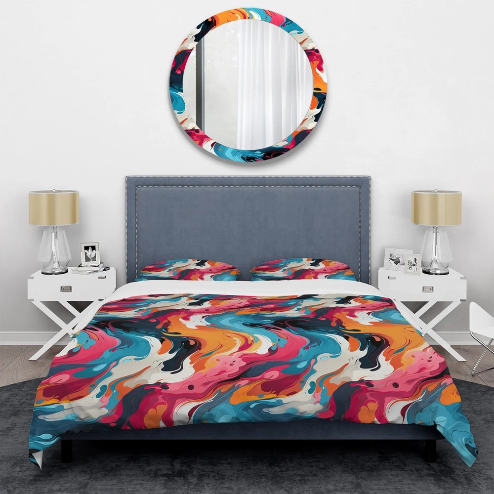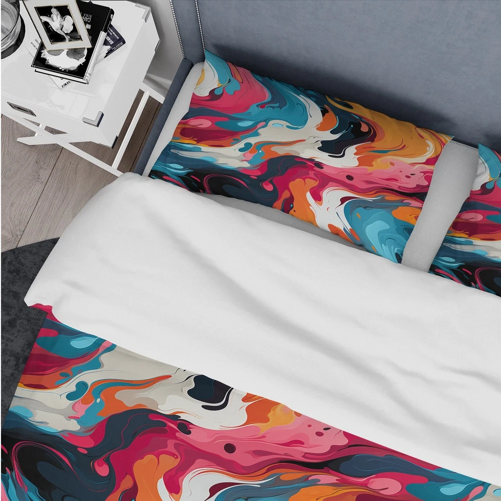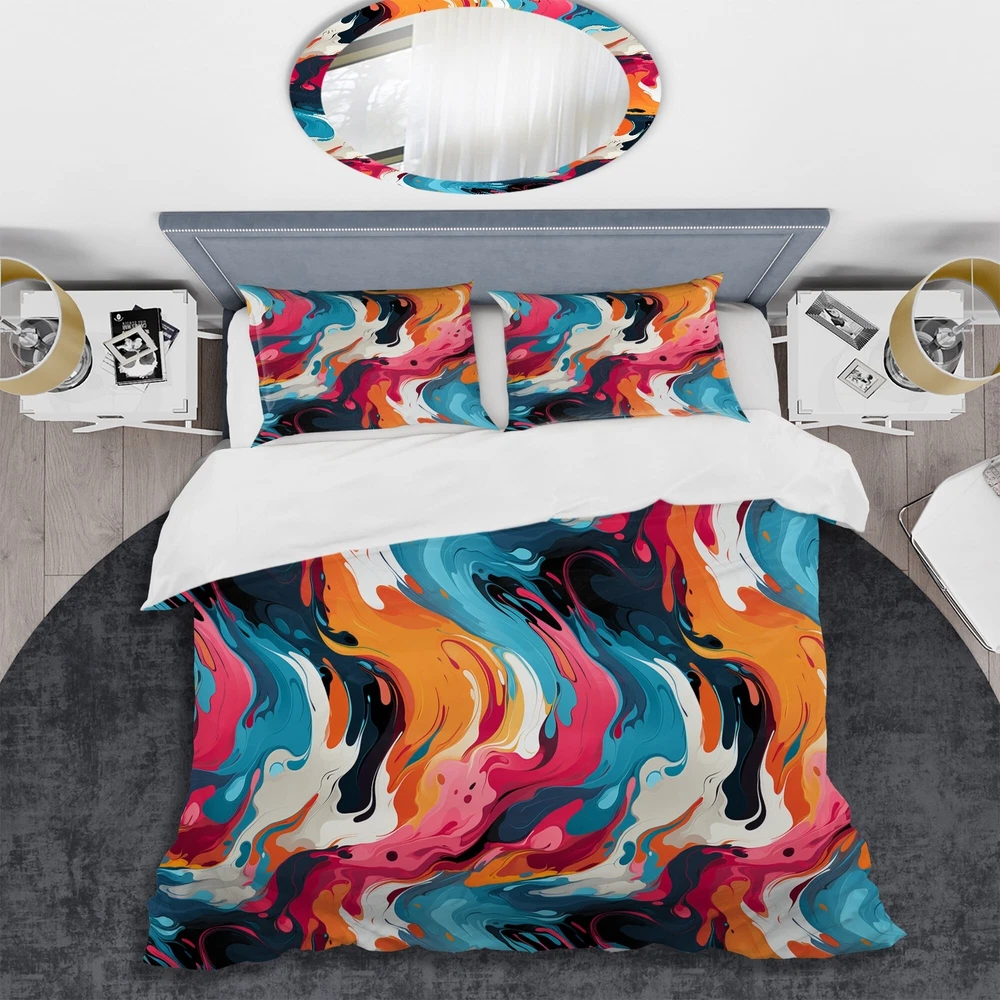 There is just nothing better than a beautiful, inviting comfortable bed after a long day. This Abstract bed set is created using the richest colors stemming from high density Italian ink and the softest fabrics making it the perfect way to spruce up your bedroom, while keeping it ultra-comfortable. This luxurious Popart Dynamic Brushstrokes I bed design is made with 100% microfiber polyester, making it ultra-soft to ensure you sleep comfortably all night long. This Modern & Contemporary set includes 1 Bed Cover and 2 Shams and is available in twin, queen and king sizes.This Bedding Set is easily integrated into your already decorated space.What's Included? - Duvet Cover - Shams - Pillow Cases not included but can be buy separately - Comforter Insert NOT INCLUDEDFeatures - Free Shipping Over $49.99* Details Designart "Popart Dynamic Brushstrokes I" Modern Bed Cover Set With 2 Shams Product Description: There is just nothing better than a beautiful, inviting comfortable bed after a long day. This Abstract bed set is created using the richest colors stemming from high density Italian ink and the softest fabrics making it the perfect way to spruce up your bedroom, while keeping it ultra-comfortable. This luxurious Popart Dynamic Brushstrokes I bed design is made with 100% microfiber polyester, making it ultra-soft to ensure you sleep comfortably all night long. This Modern & Contemporary set includes 1 Bed Cover and 2 Shams and is available in twin, queen and king sizes. This Bedding Set is easily integrated into your already decorated space. What's Included? - Duvet Cover - Shams - Pillow Cases not included but can be buy separately - Comforter Insert NOT INCLUDED Features - Printed using High Density Italian Ink making the colors extra vibrant. - Made from ultra-soft, lightweight 100% microfiber polyester. Wrinkle resistant fabric. Down-like comfort, odorless. - The Modern & Contemporary bed set includes one bed cover and two standard pillow shams to create a complete and stylish look. - The elegant and soft colors are both trendy and fun to brighten and update your bedroom. - Made in Canada - Decorative Wall Art and throw pillows to match this set are available but sold separately. - Actual comforter inserts and pillow inserts are not included. This set includes the two pillow shams and comforter cover only. King Dimensions: - 1 Duvet Cover104 inches wide x 88 inches long - 2 King Shams20 inches wide x 36 inches long Queen Dimensions: - 1 Duvet Cover88 inches wide x 88 inches long - 2 Standard Shams16 inches wide x 26 inches long Twin Dimensions: - 1 Duvet Cover68 inches wide x 88 inches long - 1 Standard Sham16 inches wide x 26 inches long Product Details - MaterialPolyester. - PatternAbstract - ColorMulticolor - StyleModern & Contemporary - ReversibleNo Directions: Fabric Care InstructionsMachine wash on cold gentle cycle. Wash separately on first wash. Use only non- chlorine bleach when needed. Tumble dry low. Remove promptly.