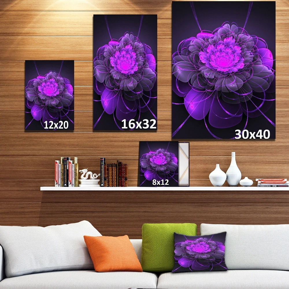 This beautiful art is printed using the highest quality fade resistant ink on canvas. Every one of our fine art giclee canvas prints is printed on premium quality cotton canvas, using the finest quality inks which will not fade over time. Each giclee print is stretched tightly over a 1 inch wood sub frame ensuring the canvas is taught and does not buckle. This canvas giclee print is gallery-wrapped (the design continues on the sides) , giving it a real art gallery feel. Premium quality cotton canvas. Arrives ready to hang on the wall Easy to Hang Free Shipping Over $49.99* Details Designart "Purple 3D Lotus Exotic Flower" Floral Contemporary Art on wrapped Product Description: This beautiful art is printed using the highest quality fade resistant ink on canvas. Every one of our fine art giclee canvas prints is printed on premium quality cotton canvas, using the finest quality inks which will not fade over time. Each giclee print is stretched tightly over a 1 inch wood sub frame ensuring the canvas is taught and does not buckle. This canvas giclee print is gallery-wrapped (the design continues on the sides) , giving it a real art gallery feel. Premium quality cotton canvas. Arrives ready to hang on the wall Easy to Hang