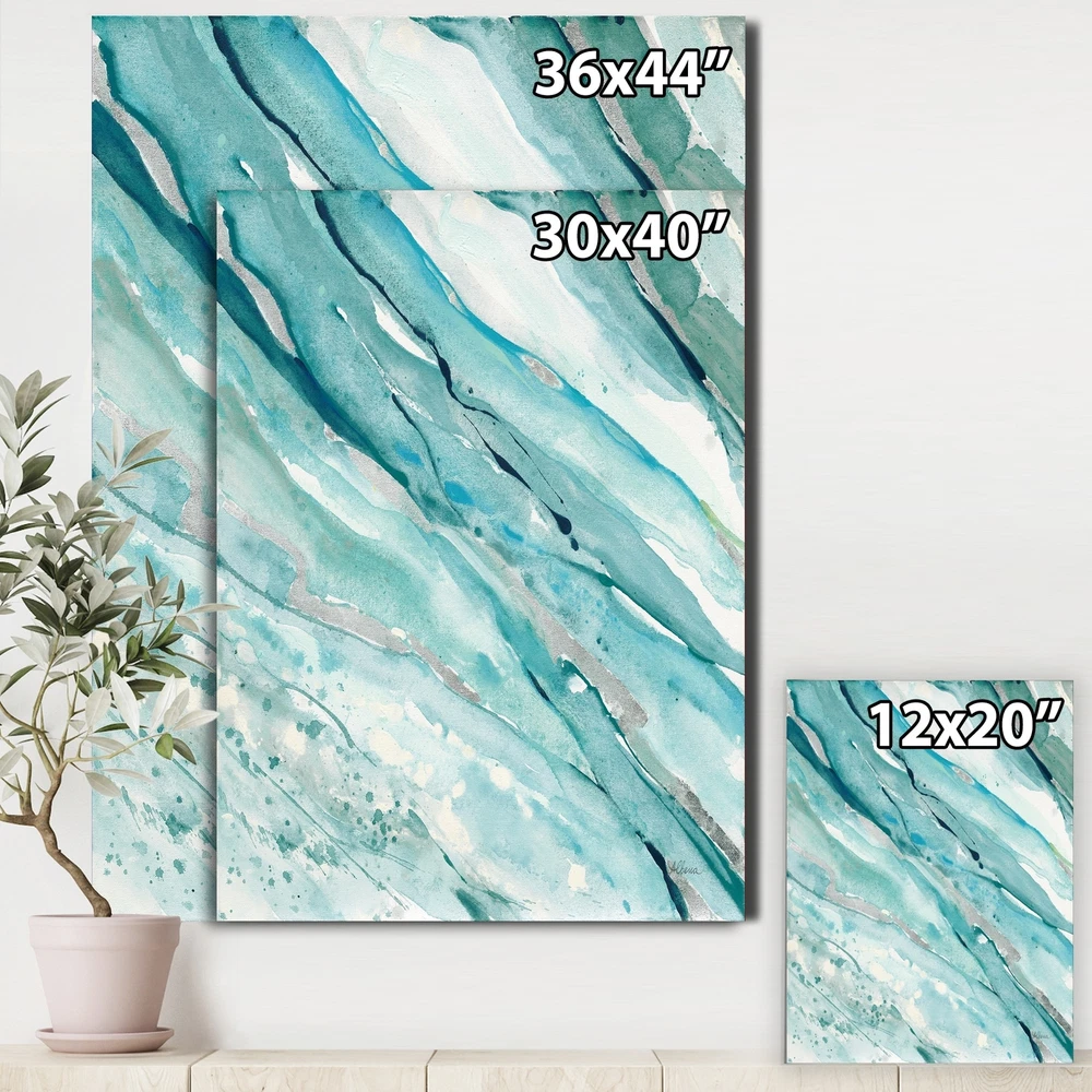 Add a hint of coastal elegance to your space with the soothing lines of this 'Silver Springs I Blue Green' canvas artwork. The artwork features a marbled design of blue, green, and silver colors that evoke feelings of the sea. The design is giclee printed on premium quality cotton canvas that has been gallery wrapped for easy hanging.Features: Premium quality cotton canvas Abstract design Blue, green, and silver colors Gallery wrapped canvas Easy to hang Giclee printed Stretched over a 1-inch wood frame Sizes 30x40 and above use a 1.5-inch internal frame See option selection for available sizes Free Shipping Over $49.99* Details Designart "Silver Springs I Blue Green" Coastal Canvas Art Product Description: Add a hint of coastal elegance to your space with the soothing lines of this 'Silver Springs I Blue Green' canvas artwork. The artwork features a marbled design of blue, green, and silver colors that evoke feelings of the sea. The design is giclee printed on premium quality cotton canvas that has been gallery wrapped for easy hanging. Features: Premium quality cotton canvas Abstract design Blue, green, and silver colors Gallery wrapped canvas Easy to hang Giclee printed Stretched over a 1-inch wood frame Sizes 30x40 and above use a 1.5-inch internal frame See option selection for available sizes