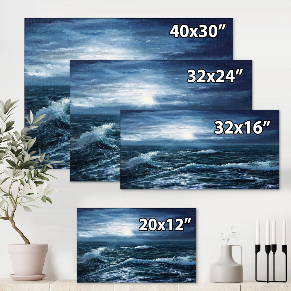 This beautiful Nautical & Coastal Canvas Art is printed using the highest quality fade resistant ink on canvas. Every one of our fine art giclee canvas prints is printed on premium quality cotton canvas, using the finest quality inks which will not fade over time. Each giclee print is stretched tightly over a 1 inch wood sub frame for small size prints or a 1.5 inch wood sub frame for large size prints (40x30 36x36 ...) ensuring the canvas is taught and does not buckle. This canvas art print is gallery-wrapped (the design continues on the sides) , giving it a real art gallery feel. All of our canvas prints are carefully packaged with plastic protection, fragile labeling and sturdy boxes to ensure a safe delivery. Every canvas print arrives ready to hang on the wall, with the hanging kits Free Shipping Over $49.99* Details Designart "Sunshine Through The Ocean Waves" Nautical & Coastal Canvas Wall Art Product Description: This beautiful Nautical & Coastal Canvas Art is printed using the highest quality fade resistant ink on canvas. Every one of our fine art giclee canvas prints is printed on premium quality cotton canvas, using the finest quality inks which will not fade over time. Each giclee print is stretched tightly over a 1 inch wood sub frame for small size prints or a 1.5 inch wood sub frame for large size prints (40x30 36x36 ...) ensuring the canvas is taught and does not buckle. This canvas art print is gallery-wrapped (the design continues on the sides) , giving it a real art gallery feel. All of our canvas prints are carefully packaged with plastic protection, fragile labeling and sturdy boxes to ensure a safe delivery. Every canvas print arrives ready to hang on the wall, with the hanging kits included. - Style Nautical & Coastal, - Subject Beach, Landscapes - Color Blue, - This canvas giclee print is gallery-wrapped (the design continues on the sides) , giving it a real art gallery feel. - Premium quality cotton canvas. - Arrives ready to hang on the wall - Easy to Hang