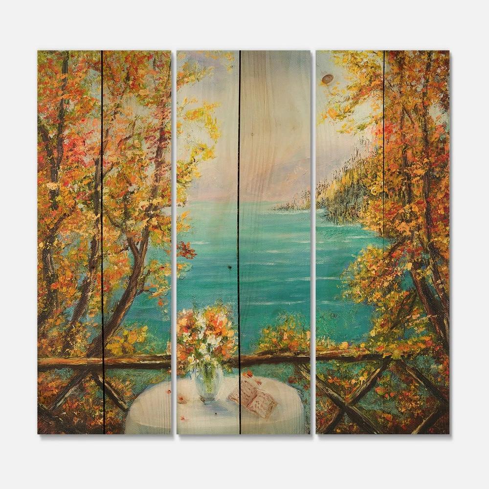 Alas, a modern take on wood wall art. Once typically a wall art piece found only in rustic or farmhouse style decor settings, this Beach wood wall art will easily fit into even the most contemporary of designs.Using the highest quality 6 Color Canon UV Ink, this Nautical & Coastal wood wall art incorporates several aspects of fine design into one stunning piece. With its slightly visible wood grain appearing through the colors and sleekly finished edges, it is a wonderful choice for any room in your home or office, being it a traditional or modern space. As each piece of wood has natural grain differences from the next, each of these wood wall arts is a truly unique addition to your space.Each Wood wall art is 100% handmade in Canada on Natural pine wood, using the highest quality ink Free Shipping Over $49.99* Details Designart 'Terrace VIew By The Blue Ocean' Nautical & Coastal Print on Natural Product Description: Alas, a modern take on wood wall art. Once typically a wall art piece found only in rustic or farmhouse style decor settings, this Beach wood wall art will easily fit into even the most contemporary of designs. Using the highest quality 6 Color Canon UV Ink, this Nautical & Coastal wood wall art incorporates several aspects of fine design into one stunning piece. With its slightly visible wood grain appearing through the colors and sleekly finished edges, it is a wonderful choice for any room in your home or office, being it a traditional or modern space. As each piece of wood has natural grain differences from the next, each of these wood wall arts is a truly unique addition to your space. Each Wood wall art is 100% handmade in Canada on Natural pine wood, using the highest quality ink which will not fade over time. - OrientationHorizontal - SubjectBeach TypeWood Wall Art, Fine Art, Wood Fine Art, Print on Plaque - Arrives ready to hang on the wall with hanging kit included - MaterialMade with 100% natural pine wood - StyleNautical & Coastal - Number of Pieces3 - ColorBlue