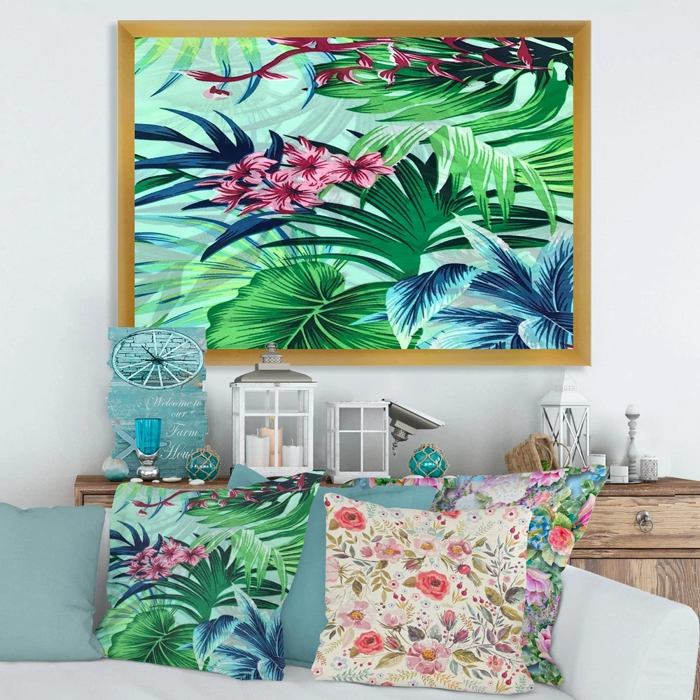 This beautiful Tropical VIntage Flowers VII Framed wall Art is printed using the highest quality fade resistant ink on canvas. Every one of our Framed Giclee Prints is printed on premium quality canvas, using the finest quality inks which will not fade over time and then mounted and framed on a 1.5 inch wide frame.This framed art print is available in many different color frames. All of our framed art prints are carefully packaged with corner protectors, fragile labeling, and sturdy boxes to ensure a safe delivery. Every framed art arrives ready to hang on the wall, with the hanging kit included.Features:- Style : Traditional- Subject : Floral- Color : Green- Premium quality cotton canvas mounted.- Available in several frame colors. - Arrives with instructions and hanging kit Free Shipping Over $49.99* Details Designart "Tropical VIntage Flowers VII" Traditional Framed Art Print Product Description: This beautiful Tropical VIntage Flowers VII Framed wall Art is printed using the highest quality fade resistant ink on canvas. Every one of our Framed Giclee Prints is printed on premium quality canvas, using the finest quality inks which will not fade over time and then mounted and framed on a 1.5 inch wide frame. This framed art print is available in many different color frames. All of our framed art prints are carefully packaged with corner protectors, fragile labeling, and sturdy boxes to ensure a safe delivery. Every framed art arrives ready to hang on the wall, with the hanging kit included. Features: - Style Traditional - Subject Floral - Color Green - Premium quality cotton canvas mounted. - Available in several frame colors. - Arrives with instructions and hanging kit
