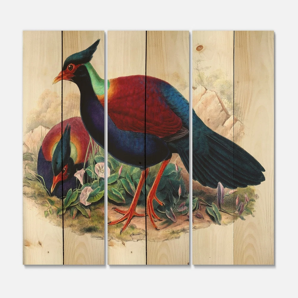 Alas, a modern take on wood wall art. Once typically a wall art piece found only in rustic or farmhouse style decor settings, this Animals wood wall art will easily fit into even the most contemporary of designs.Using the highest quality 6 Color Canon UV Ink, this Traditional wood wall art incorporates several aspects of fine design into one stunning piece. With its slightly visible wood grain appearing through the colors and sleekly finished edges, it is a wonderful choice for any room in your home or office, being it a traditional or modern space. As each piece of wood has natural grain differences from the next, each of these wood wall arts is a truly unique addition to your space.Each Wood wall art is 100% handmade in Canada on Natural pine wood, using the highest quality ink which Free Shipping Over $49.99* Details Designart 'Vintage Birds In The Wild II' Traditional Print on Natural Pine Wood Product Description: Alas, a modern take on wood wall art. Once typically a wall art piece found only in rustic or farmhouse style decor settings, this Animals wood wall art will easily fit into even the most contemporary of designs. Using the highest quality 6 Color Canon UV Ink, this Traditional wood wall art incorporates several aspects of fine design into one stunning piece. With its slightly visible wood grain appearing through the colors and sleekly finished edges, it is a wonderful choice for any room in your home or office, being it a traditional or modern space. As each piece of wood has natural grain differences from the next, each of these wood wall arts is a truly unique addition to your space. Each Wood wall art is 100% handmade in Canada on Natural pine wood, using the highest quality ink which will not fade over time. - OrientationHorizontal - SubjectAnimals TypeWood Wall Art, Fine Art, Wood Fine Art, Print on Plaque - Arrives ready to hang on the wall with hanging kit included - MaterialMade with 100% natural pine wood - StyleTraditional - Number of Pieces3 - ColorRed