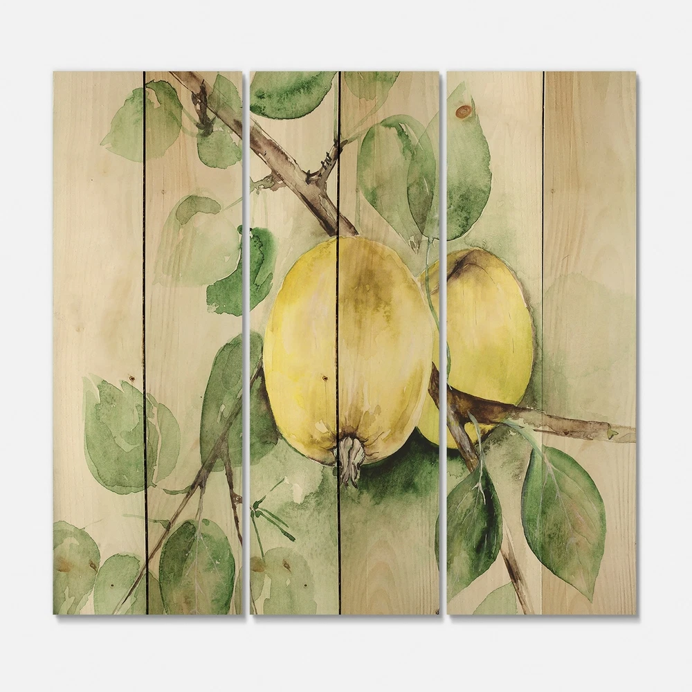 Alas, a modern take on wood wall art. Once typically a wall art piece found only in rustic or farmhouse style decor settings, this Cottage wood wall art will easily fit into even the most contemporary of designs.Using the highest quality 6 Color Canon UV Ink, this Farmhouse wood wall art incorporates several aspects of fine design into one stunning piece. With its slightly visible wood grain appearing through the colors and sleekly finished edges, it is a wonderful choice for any room in your home or office, being it a traditional or modern space. As each piece of wood has natural grain differences from the next, each of these wood wall arts is a truly unique addition to your space.Each Wood wall art is 100% handmade in Canada on Natural pine wood, using the highest quality ink which will Free Shipping Over $49.99* Details Designart 'Vintage Green Appels' Farmhouse Print on Natural Pine Wood - 3 Panels Product Description: Alas, a modern take on wood wall art. Once typically a wall art piece found only in rustic or farmhouse style decor settings, this Cottage wood wall art will easily fit into even the most contemporary of designs. Using the highest quality 6 Color Canon UV Ink, this Farmhouse wood wall art incorporates several aspects of fine design into one stunning piece. With its slightly visible wood grain appearing through the colors and sleekly finished edges, it is a wonderful choice for any room in your home or office, being it a traditional or modern space. As each piece of wood has natural grain differences from the next, each of these wood wall arts is a truly unique addition to your space. Each Wood wall art is 100% handmade in Canada on Natural pine wood, using the highest quality ink which will not fade over time. - OrientationHorizontal - SubjectCottage TypeWood Wall Art, Fine Art, Wood Fine Art, Print on Plaque - Arrives ready to hang on the wall with hanging kit included - MaterialMade with 100% natural pine wood - StyleFarmhouse - Number of Pieces3 - ColorGreen