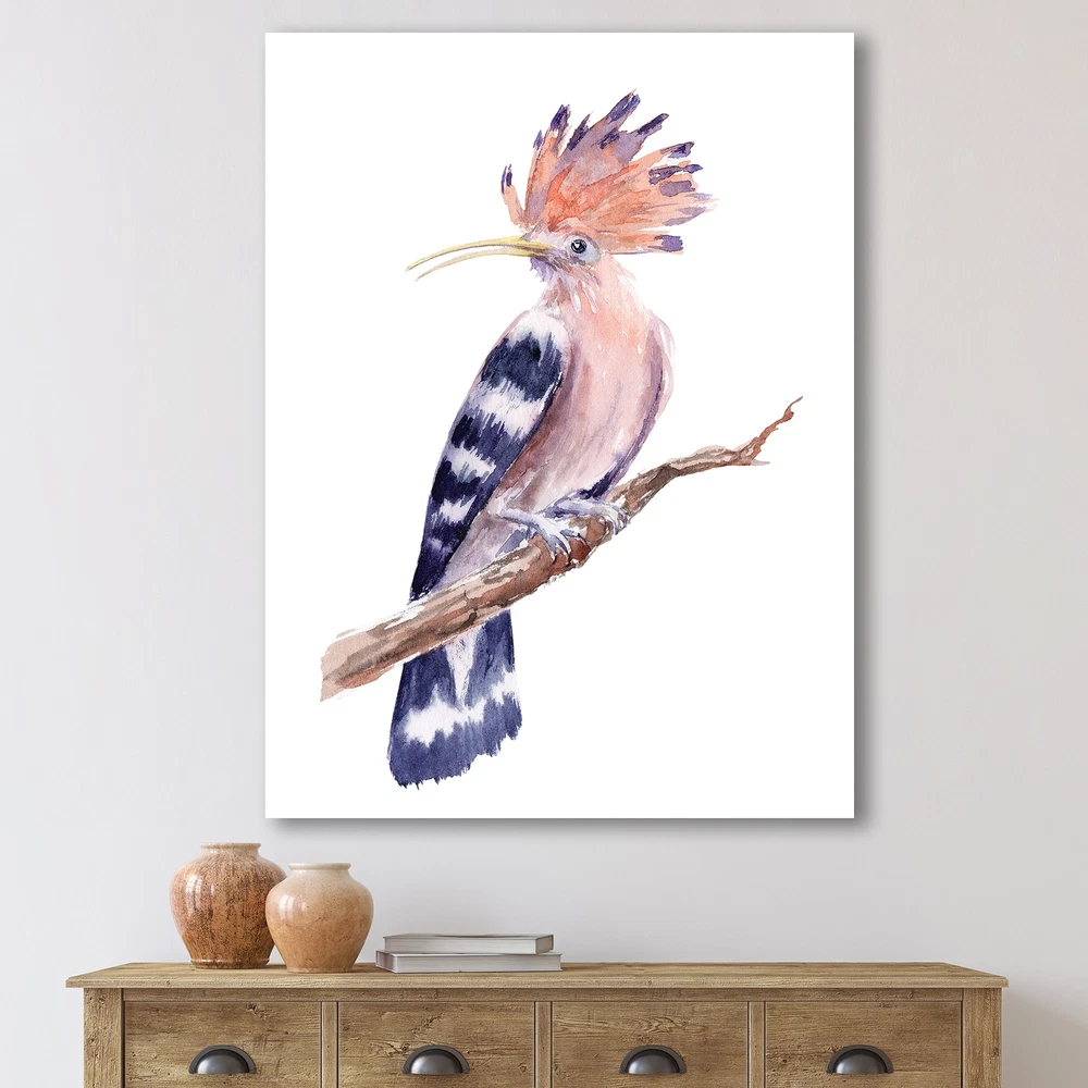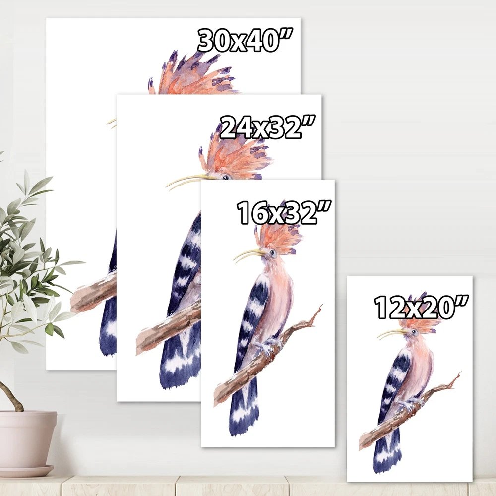 This beautiful Traditional Canvas Art is printed using the highest quality fade resistant ink on canvas. Every one of our fine art giclee canvas prints is printed on premium quality cotton canvas, using the finest quality inks which will not fade over time. Each giclee print is stretched tightly over a 1 inch wood sub frame for small size prints or a 1.5 inch wood sub frame for large size prints (40x30 36x36 ...) ensuring the canvas is taught and does not buckle. This canvas art print is gallery-wrapped (the design continues on the sides) , giving it a real art gallery feel. All of our canvas prints are carefully packaged with plastic protection, fragile labeling and sturdy boxes to ensure a safe delivery. Every canvas print arrives ready to hang on the wall, with the hanging kits Free Shipping Over $49.99* Details Designart "Vintage Hoopoe Bird On A Branch" Traditional Canvas Wall Art Print Product Description: This beautiful Traditional Canvas Art is printed using the highest quality fade resistant ink on canvas. Every one of our fine art giclee canvas prints is printed on premium quality cotton canvas, using the finest quality inks which will not fade over time. Each giclee print is stretched tightly over a 1 inch wood sub frame for small size prints or a 1.5 inch wood sub frame for large size prints (40x30 36x36 ...) ensuring the canvas is taught and does not buckle. This canvas art print is gallery-wrapped (the design continues on the sides) , giving it a real art gallery feel. All of our canvas prints are carefully packaged with plastic protection, fragile labeling and sturdy boxes to ensure a safe delivery. Every canvas print arrives ready to hang on the wall, with the hanging kits included. - Style Traditional,Farmhouse - Subject Animals, Cottage - Color Pink, - This canvas giclee print is gallery-wrapped (the design continues on the sides) , giving it a real art gallery feel. - Premium quality cotton canvas. - Arrives ready to hang on the wall - Easy to Hang