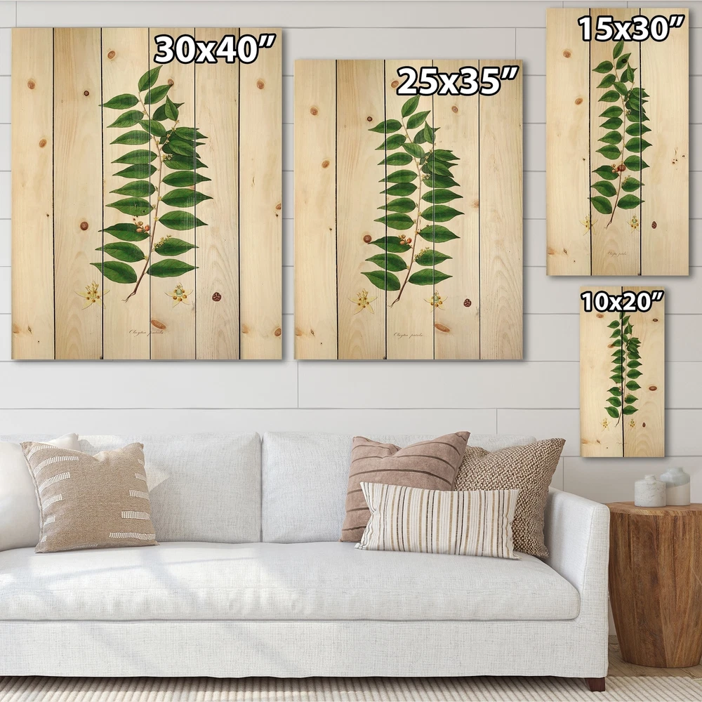 Alas, a modern take on wood wall art. Once typically a wall art piece found only in rustic or farmhouse style decor settings, this Floral wood wall art will easily fit into even the most contemporary of designs.Using the highest quality 6 Color Canon UV Ink, this Farmhouse wood wall art incorporates several aspects of fine design into one stunning piece. With its slightly visible wood grain appearing through the colors and sleekly finished edges, it is a wonderful choice for any room in your home or office, being it a traditional or modern space. As each piece of wood has natural grain differences from the next, each of these wood wall arts is a truly unique addition to your space.Each Wood wall art is 100% handmade in Canada on Natural pine wood, using the highest quality ink which will Free Shipping Over $49.99* Details Designart 'Vintage London Plants VI' Farmhouse Print on Natural Pine Wood Product Description: Alas, a modern take on wood wall art. Once typically a wall art piece found only in rustic or farmhouse style decor settings, this Floral wood wall art will easily fit into even the most contemporary of designs. Using the highest quality 6 Color Canon UV Ink, this Farmhouse wood wall art incorporates several aspects of fine design into one stunning piece. With its slightly visible wood grain appearing through the colors and sleekly finished edges, it is a wonderful choice for any room in your home or office, being it a traditional or modern space. As each piece of wood has natural grain differences from the next, each of these wood wall arts is a truly unique addition to your space. Each Wood wall art is 100% handmade in Canada on Natural pine wood, using the highest quality ink which will not fade over time. Available in Differents sizes - OrientationVertical - SubjectFloral TypeWood Wall Art, Fine Art, Wood Fine Art, Print on Plaque - Arrives ready to hang on the wall with hanging kit included - MaterialMade with 100% natural pine wood - StyleFarmhouse - Number of Pieces1 - ColorGreen
