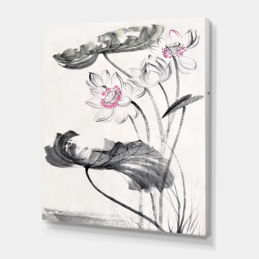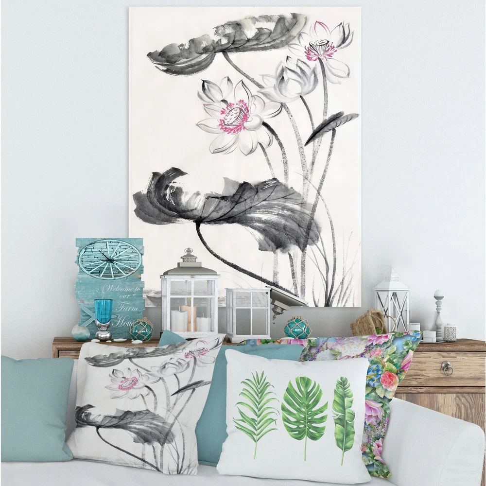 This beautiful Traditional Canvas Art is printed using the highest quality fade resistant ink on canvas. Every one of our fine art giclee canvas prints is printed on premium quality cotton canvas, using the finest quality inks which will not fade over time. Each giclee print is stretched tightly over a 1 inch wood sub frame for small size prints or a 1.5 inch wood sub frame for large size prints (40x30 36x36 ...) ensuring the canvas is taught and does not buckle. This canvas art print is gallery-wrapped (the design continues on the sides) , giving it a real art gallery feel. All of our canvas prints are carefully packaged with plastic protection, fragile labeling and sturdy boxes to ensure a safe delivery. Every canvas print arrives ready to hang on the wall, with the hanging kits Free Shipping Over $49.99* Details Designart "Vintage Lotus Flowers" Traditional Canvas Wall Art Print Product Description: This beautiful Traditional Canvas Art is printed using the highest quality fade resistant ink on canvas. Every one of our fine art giclee canvas prints is printed on premium quality cotton canvas, using the finest quality inks which will not fade over time. Each giclee print is stretched tightly over a 1 inch wood sub frame for small size prints or a 1.5 inch wood sub frame for large size prints (40x30 36x36 ...) ensuring the canvas is taught and does not buckle. This canvas art print is gallery-wrapped (the design continues on the sides) , giving it a real art gallery feel. All of our canvas prints are carefully packaged with plastic protection, fragile labeling and sturdy boxes to ensure a safe delivery. Every canvas print arrives ready to hang on the wall, with the hanging kits included. - Style Traditional,Traditional - Subject Floral, Photography - Color Grey, - This canvas giclee print is gallery-wrapped (the design continues on the sides) , giving it a real art gallery feel. - Premium quality cotton canvas. - Arrives ready to hang on the wall - Easy to Hang