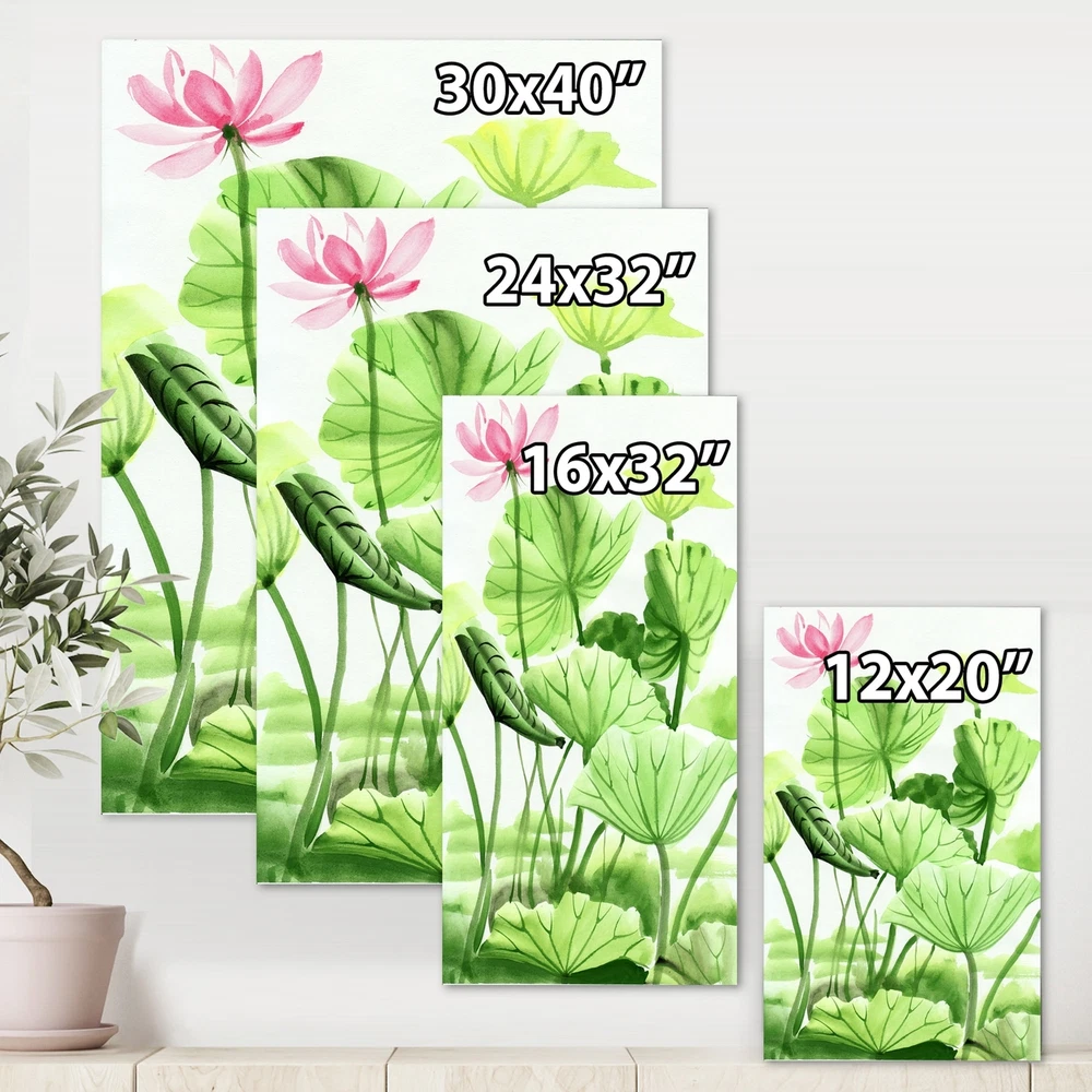 This beautiful Traditional Canvas Art is printed using the highest quality fade resistant ink on canvas. Every one of our fine art giclee canvas prints is printed on premium quality cotton canvas, using the finest quality inks which will not fade over time. Each giclee print is stretched tightly over a 1 inch wood sub frame for small size prints or a 1.5 inch wood sub frame for large size prints (40x30 36x36 ...) ensuring the canvas is taught and does not buckle. This canvas art print is gallery-wrapped (the design continues on the sides) , giving it a real art gallery feel. All of our canvas prints are carefully packaged with plastic protection, fragile labeling and sturdy boxes to ensure a safe delivery. Every canvas print arrives ready to hang on the wall, with the hanging kits Free Shipping Over $49.99* Details Designart "Vintage Lotus Leaves In The Pond" Traditional Canvas Wall Art Print Product Description: This beautiful Traditional Canvas Art is printed using the highest quality fade resistant ink on canvas. Every one of our fine art giclee canvas prints is printed on premium quality cotton canvas, using the finest quality inks which will not fade over time. Each giclee print is stretched tightly over a 1 inch wood sub frame for small size prints or a 1.5 inch wood sub frame for large size prints (40x30 36x36 ...) ensuring the canvas is taught and does not buckle. This canvas art print is gallery-wrapped (the design continues on the sides) , giving it a real art gallery feel. All of our canvas prints are carefully packaged with plastic protection, fragile labeling and sturdy boxes to ensure a safe delivery. Every canvas print arrives ready to hang on the wall, with the hanging kits included. - Style Traditional,Farmhouse - Subject Floral, Photography - Color Green, - This canvas giclee print is gallery-wrapped (the design continues on the sides) , giving it a real art gallery feel. - Premium quality cotton canvas. - Arrives ready to hang on the wall - Easy to Hang