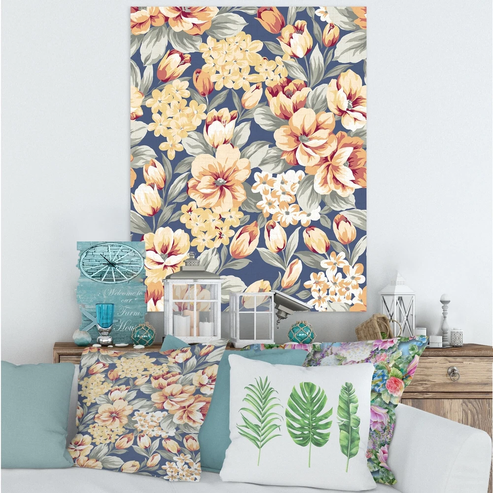 This beautiful Traditional Canvas Art is printed using the highest quality fade resistant ink on canvas. Every one of our fine art giclee canvas prints is printed on premium quality cotton canvas, using the finest quality inks which will not fade over time. Each giclee print is stretched tightly over a 1 inch wood sub frame for small size prints or a 1.5 inch wood sub frame for large size prints (40x30 36x36 ...) ensuring the canvas is taught and does not buckle. This canvas art print is gallery-wrapped (the design continues on the sides) , giving it a real art gallery feel. All of our canvas prints are carefully packaged with plastic protection, fragile labeling and sturdy boxes to ensure a safe delivery. Every canvas print arrives ready to hang on the wall, with the hanging kits Free Shipping Over $49.99* Details Designart "Vintage Yellow and Orange Flowers" Traditional Canvas Wall Art Print Product Description: This beautiful Traditional Canvas Art is printed using the highest quality fade resistant ink on canvas. Every one of our fine art giclee canvas prints is printed on premium quality cotton canvas, using the finest quality inks which will not fade over time. Each giclee print is stretched tightly over a 1 inch wood sub frame for small size prints or a 1.5 inch wood sub frame for large size prints (40x30 36x36 ...) ensuring the canvas is taught and does not buckle. This canvas art print is gallery-wrapped (the design continues on the sides) , giving it a real art gallery feel. All of our canvas prints are carefully packaged with plastic protection, fragile labeling and sturdy boxes to ensure a safe delivery. Every canvas print arrives ready to hang on the wall, with the hanging kits included. - Style Traditional,Farmhouse - Subject Floral, Country Charm - Color Beige, - This canvas giclee print is gallery-wrapped (the design continues on the sides) , giving it a real art gallery feel. - Premium quality cotton canvas. - Arrives ready to hang on the wall - Easy to Hang