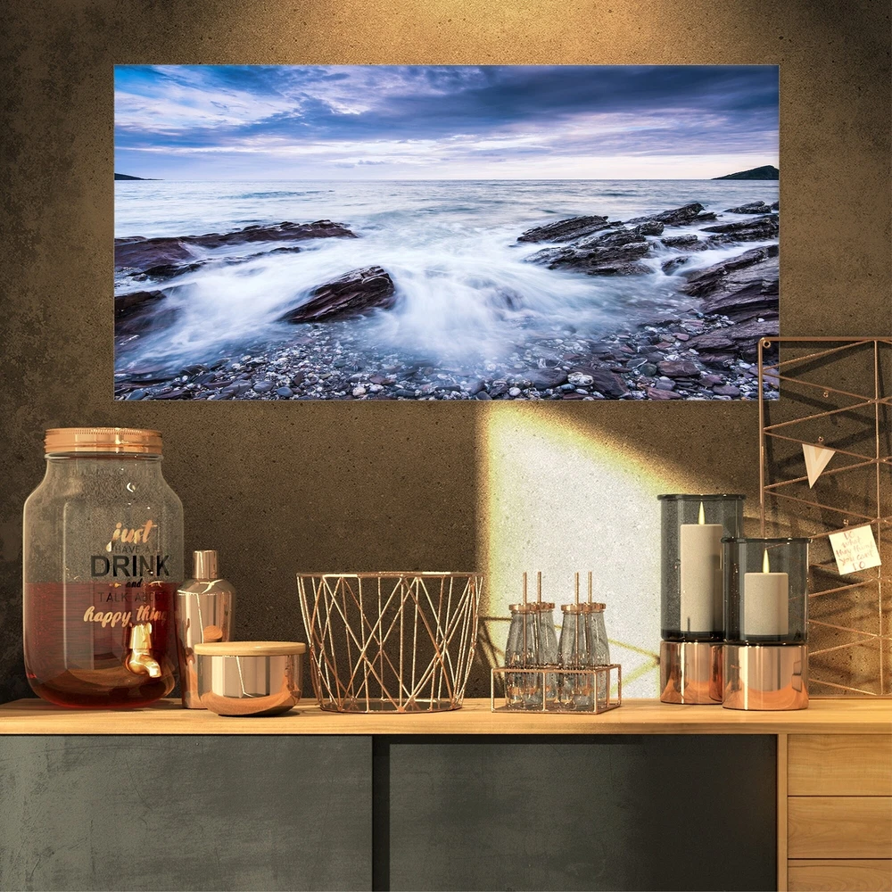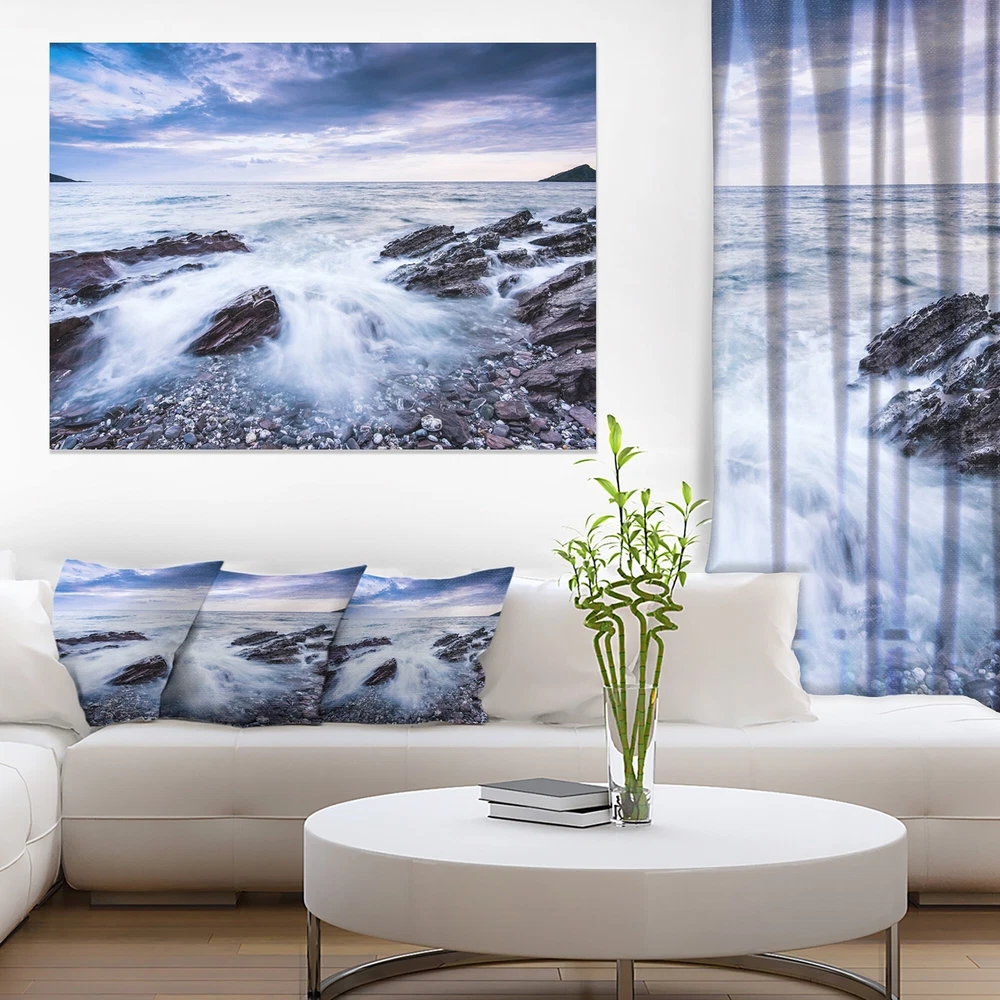 This beautiful Sea & Shore Canvas Art is printed using the highest quality fade resistant ink on canvas. Every one of our fine art giclee canvas prints is printed on premium quality cotton canvas, using the finest quality inks which will not fade over time. Each giclee print is stretched tightly over a 1 inch wood sub frame for small size prints or a 1.5 inch wood sub frame for large size prints (40x30 60x28 ...) ensuring the canvas is taught and does not buckle. This canvas art print is gallery-wrapped (the design continues on the sides) , giving it a real art gallery feel. All of our canvas prints are carefully packaged with plastic protection, fragile labeling and sturdy boxes to ensure a safe delivery. Every canvas print arrives ready to hang on the wall, with the hanging kits Free Shipping Over $49.99* Details Designart "Waves Crashing At Beach" Seascape Canvas Art Print Product Description: This beautiful Sea & Shore Canvas Art is printed using the highest quality fade resistant ink on canvas. Every one of our fine art giclee canvas prints is printed on premium quality cotton canvas, using the finest quality inks which will not fade over time. Each giclee print is stretched tightly over a 1 inch wood sub frame for small size prints or a 1.5 inch wood sub frame for large size prints (40x30 60x28 ...) ensuring the canvas is taught and does not buckle. This canvas art print is gallery-wrapped (the design continues on the sides) , giving it a real art gallery feel. All of our canvas prints are carefully packaged with plastic protection, fragile labeling and sturdy boxes to ensure a safe delivery. Every canvas print arrives ready to hang on the wall, with the hanging kits included. - Style Nautical & Coastal - Subject Sea & Shore, Nautical - Color White - This canvas giclee print is gallery-wrapped (the design continues on the sides) , giving it a real art gallery feel. - Premium quality cotton canvas. - Arrives ready to hang on the wall - Easy to Hang