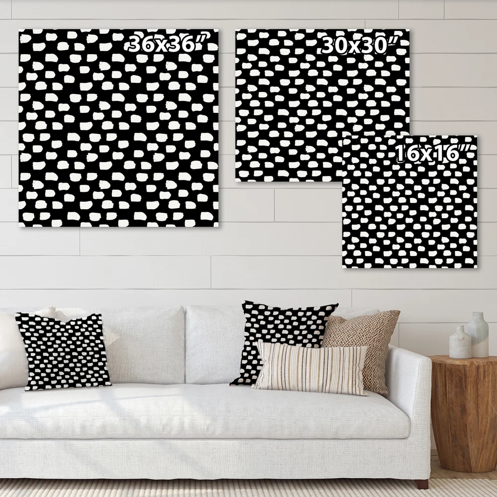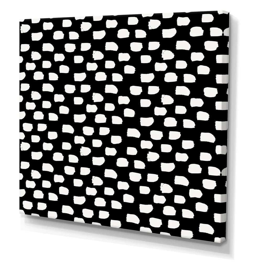This beautiful Modern Canvas Art is printed using the highest quality fade resistant ink on canvas. Every one of our fine art giclee canvas prints is printed on premium quality cotton canvas, using the finest quality inks which will not fade over time. Each giclee print is stretched tightly over a 1 inch wood sub frame for small size prints or a 1.5 inch wood sub frame for large size prints (40x30 60x28 ...) ensuring the canvas is taught and does not buckle. This canvas art print is gallery-wrapped (the design continues on the sides) , giving it a real art gallery feel. All of our canvas prints are carefully packaged with plastic protection, fragile labeling and sturdy boxes to ensure a safe delivery. Every canvas print arrives ready to hang on the wall, with the hanging kits included.- Free Shipping Over $49.99* Details Designart "White Abstract Little Shapes On Black" Modern Canvas Wall Art Print Product Description: This beautiful Modern Canvas Art is printed using the highest quality fade resistant ink on canvas. Every one of our fine art giclee canvas prints is printed on premium quality cotton canvas, using the finest quality inks which will not fade over time. Each giclee print is stretched tightly over a 1 inch wood sub frame for small size prints or a 1.5 inch wood sub frame for large size prints (40x30 60x28 ...) ensuring the canvas is taught and does not buckle. This canvas art print is gallery-wrapped (the design continues on the sides) , giving it a real art gallery feel. All of our canvas prints are carefully packaged with plastic protection, fragile labeling and sturdy boxes to ensure a safe delivery. Every canvas print arrives ready to hang on the wall, with the hanging kits included.- Style Modern & Contemporary, Mid-Century Modern- Subject Abstract, - Color Black, White- This canvas giclee print is gallery-wrapped (the design continues on the sides) , giving it a real art gallery feel.- Premium quality cotton canvas.- Arrives ready to hang on the wall- Easy to Hang